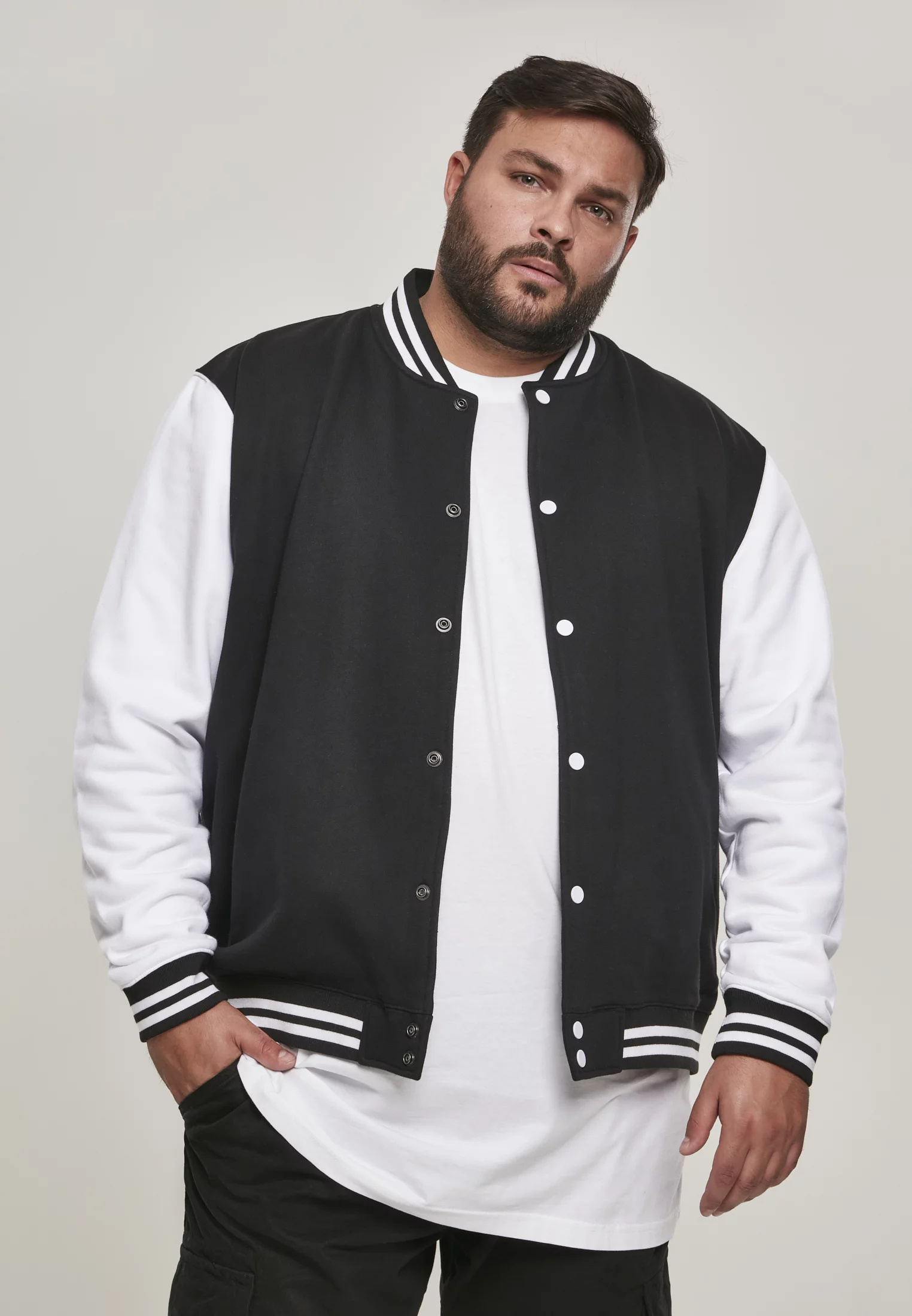 V závislosti na barevném provedení v kombinaci s džínami vzniká typický vysokoškolský vzhled nebo v kombinaci s chinos kalhotami – moderní individuální interpretací. Rukávy a knoflíky v kontrastních barvách, boční kapsy a pruhy na manžetách a límci dělají z této kolážové bundy pohodlný a všestranný základ pro nekonečné příležitosti.