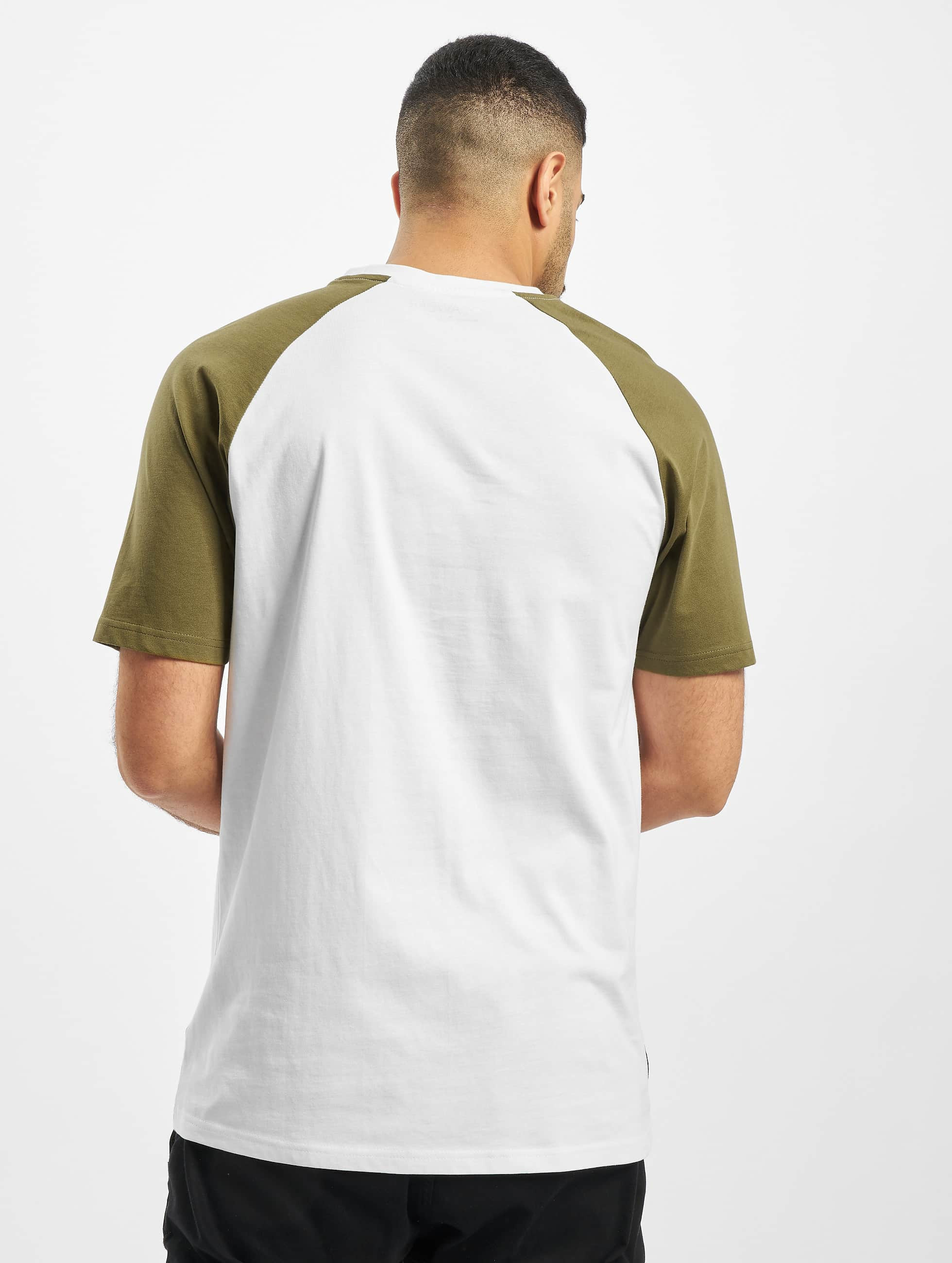 ležérní pánské tričko Rocawear jemně žebrovaný kulatý výstřih Potisk loga na přední straně malý znak loga na levém rukávu kontrastní raglánové rukávy pro moderní vzhled měkký padavý materiál nabízí vynikající pohodlí rovný střih Značka: Rocawear Kat .: Tričko Barva: bílá / olivová materiál: 100% bavlna