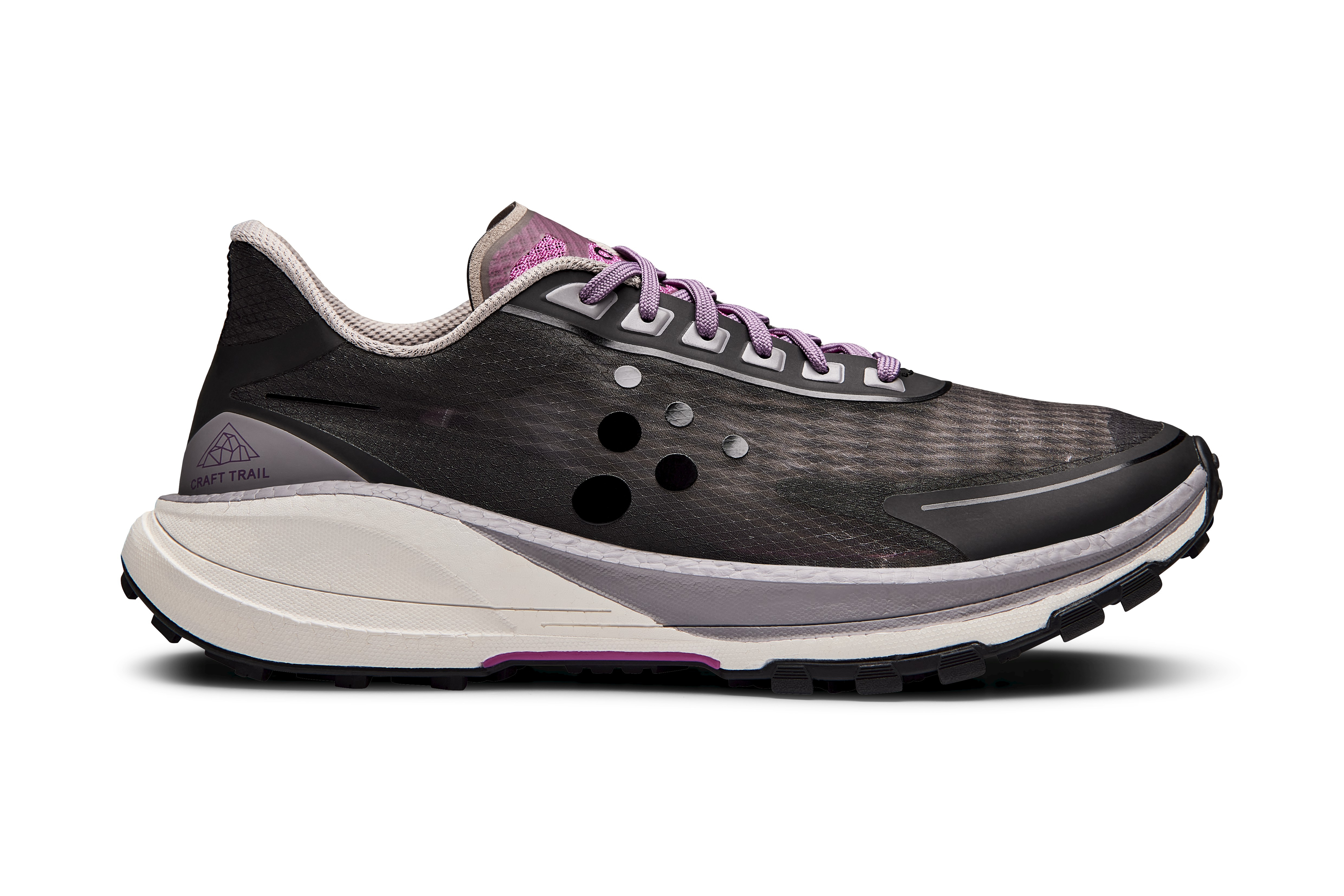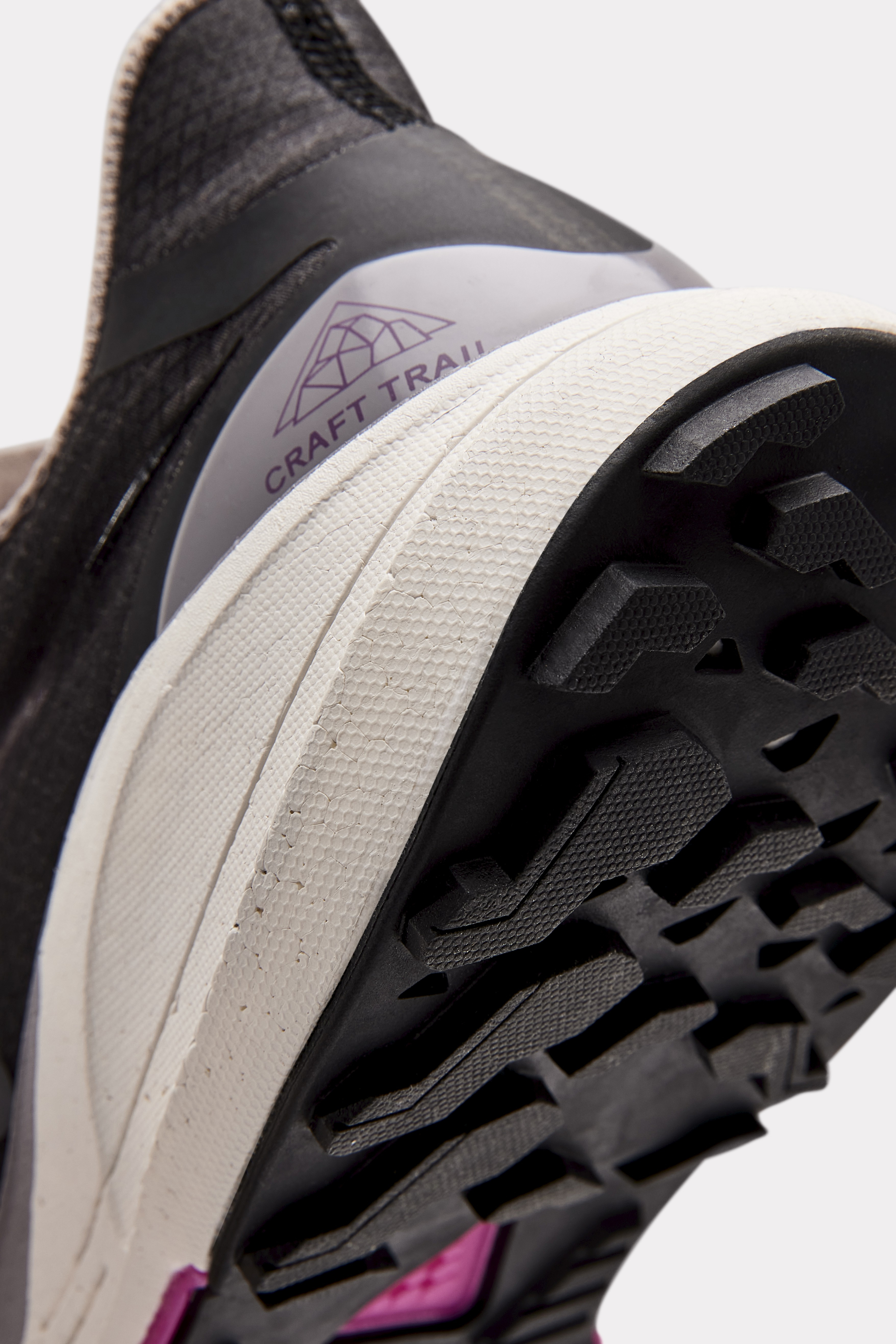 Prémiová trailová běžecká bota CRAFT Pure Trail využívá novou pěnu v mezipodešvi Cr Foam™, která poskytuje velmi dobré tlumení a stabilitu při snížené hmotnosti, ale také dynamický odraz.