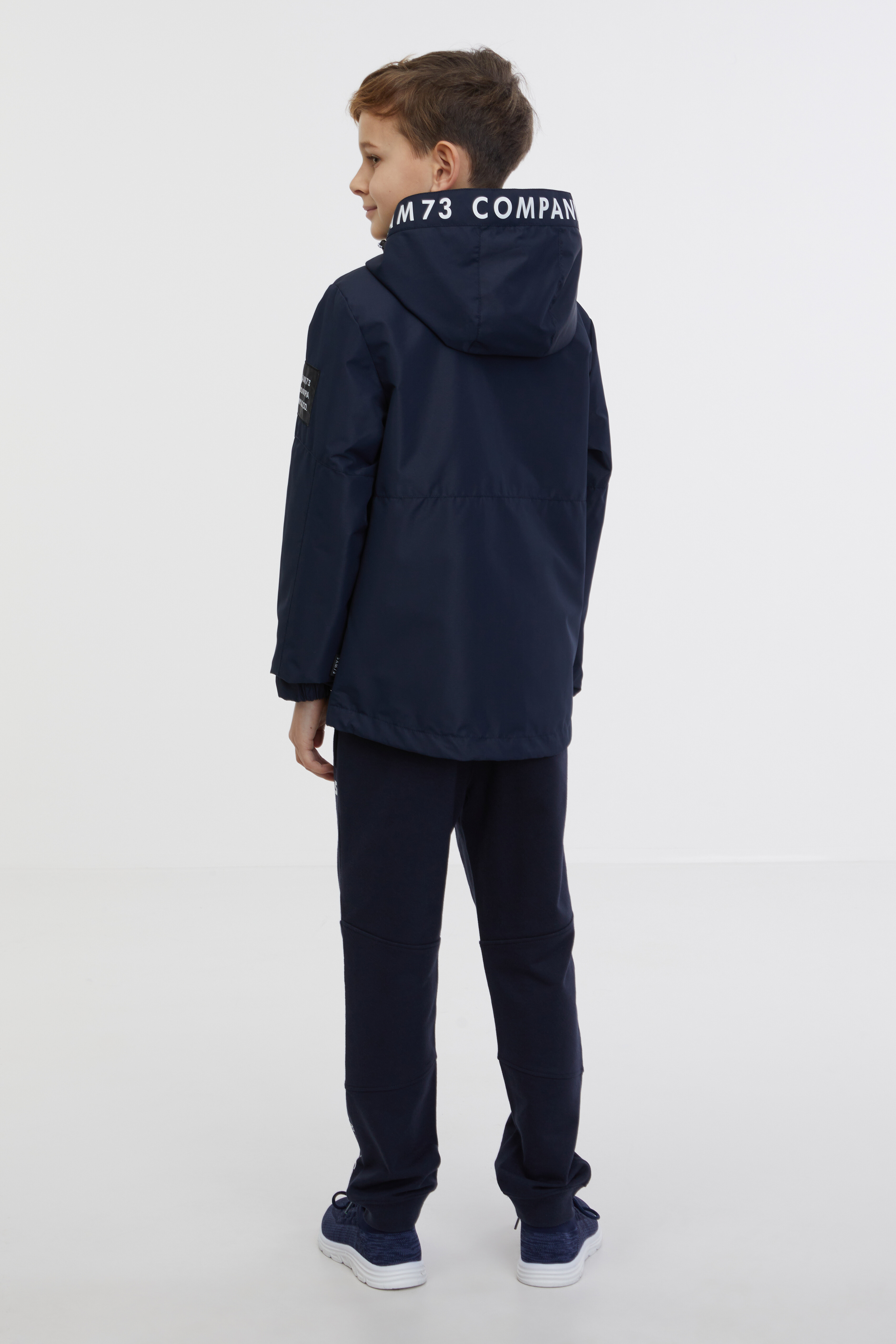Levé rameno a obvod kapuce zdobí logo. Bunda ochrání děti před deštěm.