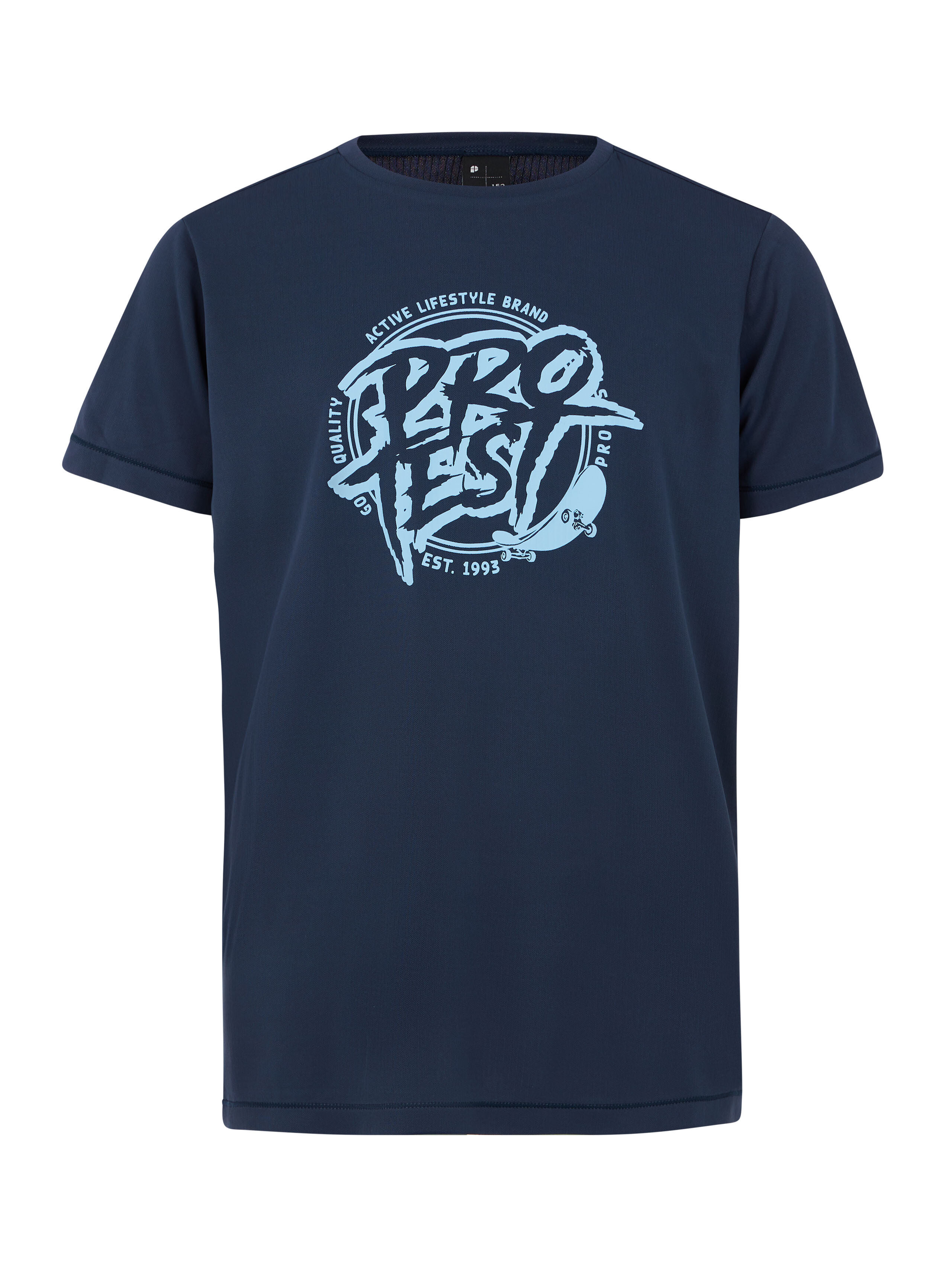 Má pravidelný střih a na přední straně má skvělý potisk Protest.