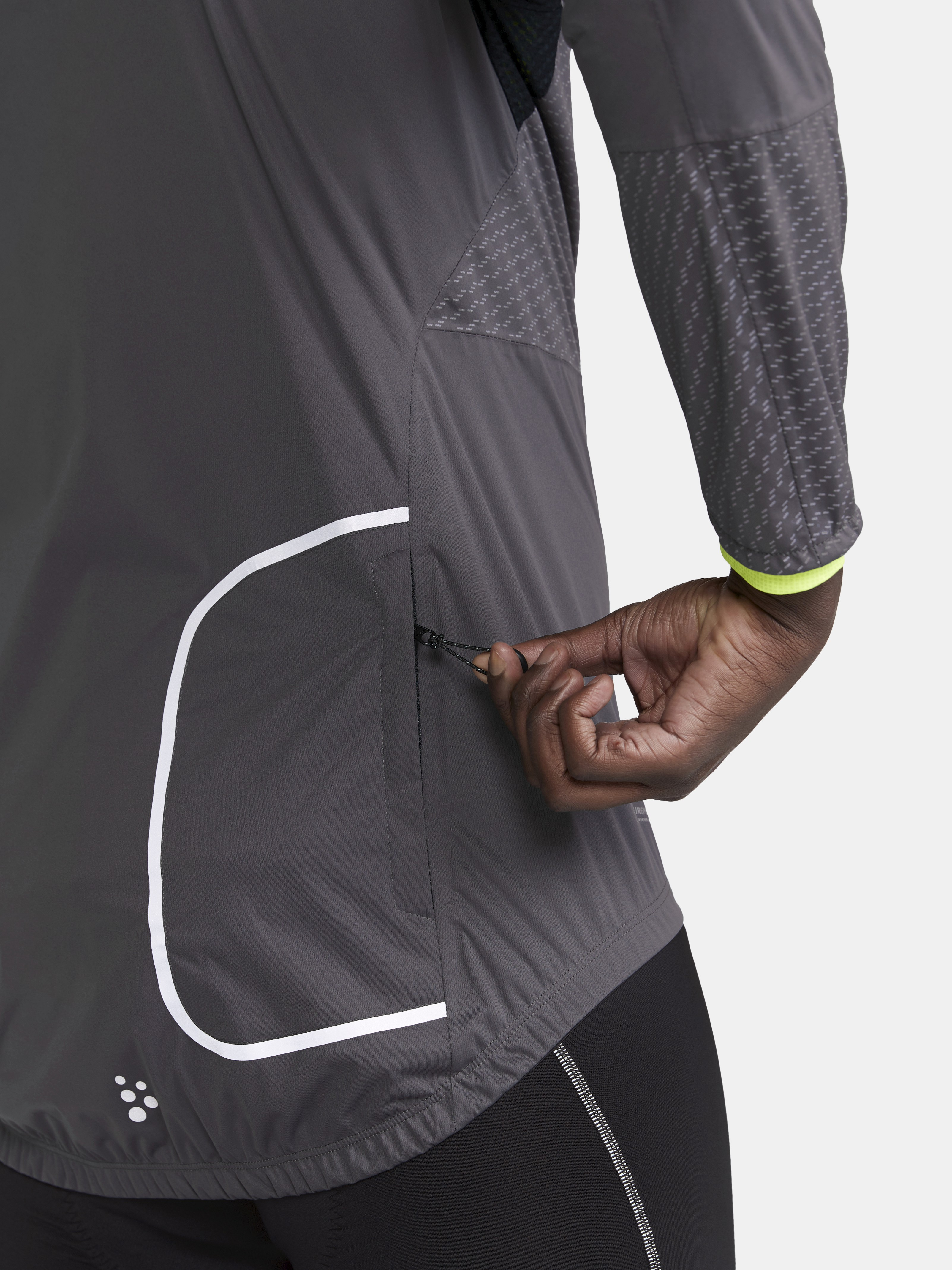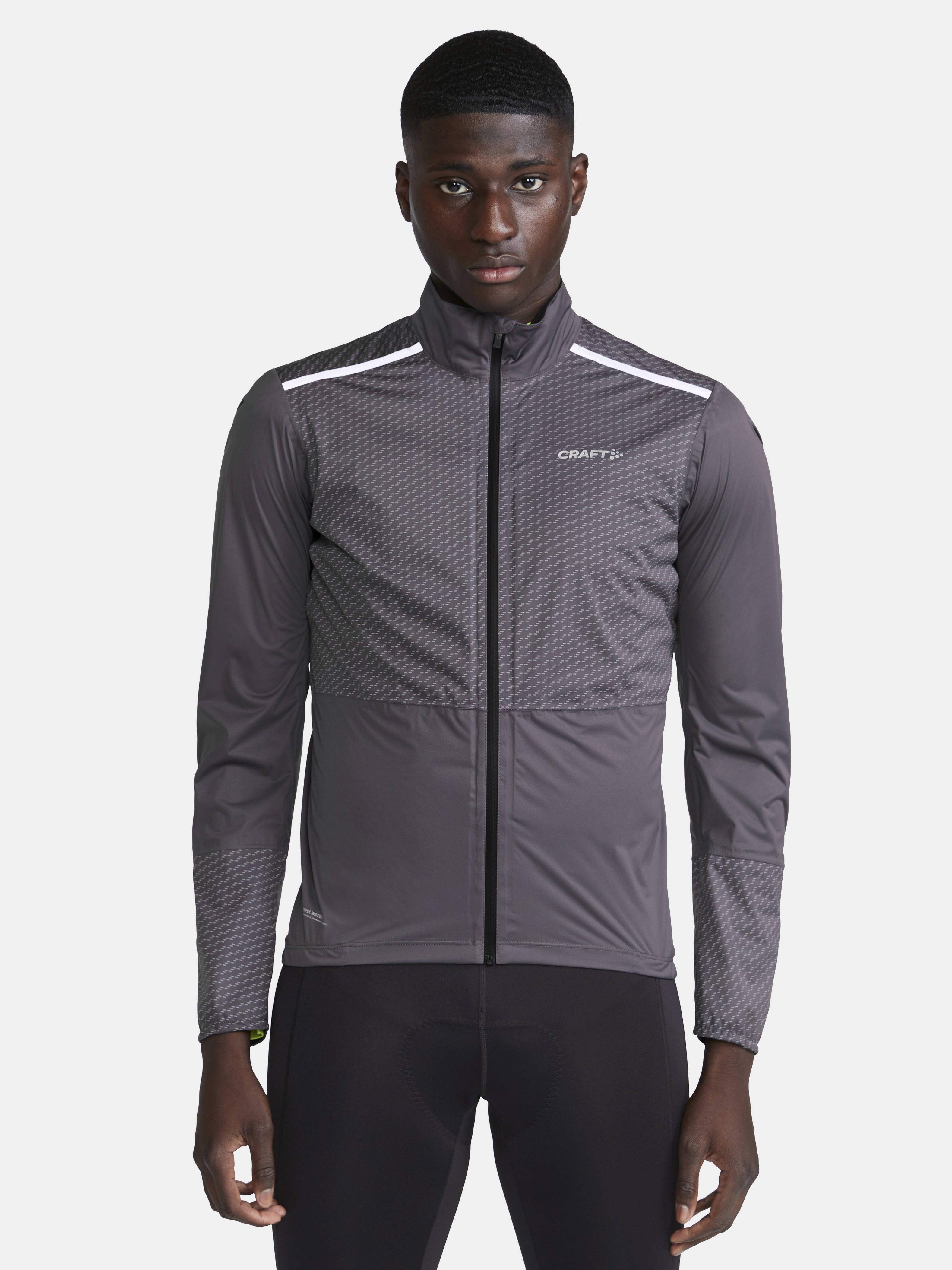 Pánská lehká větru a vodě odolná bunda CRAFT ADV BIKE Hydro Lumen s četnými reflexními prvky pro maximální bezpečnost určená pro jízdu v chladném deštivém počasí.