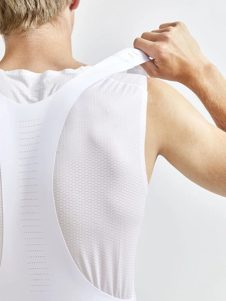 Špičkové cyklistické kalhoty CRAFT PRO Aero Bib vyrobené z materiálu Lycra Sport Energy, tedy materiálu elastického do všech směrů. Přesně střižené panely zajistí optimální proudění vzduchu kolem nohou a minimální odpor.