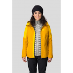 Lehká zateplovací péřová bunda Hannah Ayla, na první pohled zaujme zajímavým vzhledem struktury materiálu a prošitím. Je vyrobená z materiálu s vysokou hustotou tkaní Airlite DMF s vodoodpudivou úpravou a je komorově plněná kachním peřím s certifikací Bluesign. Bunda má proto široké možnosti využití, přes vysokohorskou turistiku, ferraty, trekking a ostatní aktivní sporty, až po cestování. Bunda se dá jednoduše sbalit do transportního obalu, který vám v batohu nezabere zbytečně moc místa. Na hlavním dvoucestném zipu i na hlavních kapsách najdeme kvalitní YKK zipy. Stojáček dobře obepne krk. Anatomicky tvarované rukávy i spodní okraj jsou také lemované gumou. Vyúžený střih Alpine skvěle sedí.