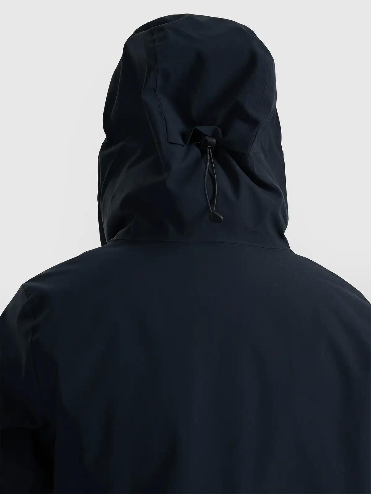 Kapuce s 3D regulací a profilovaným kšiltem chrání hlavu před deštěm a sněhem.