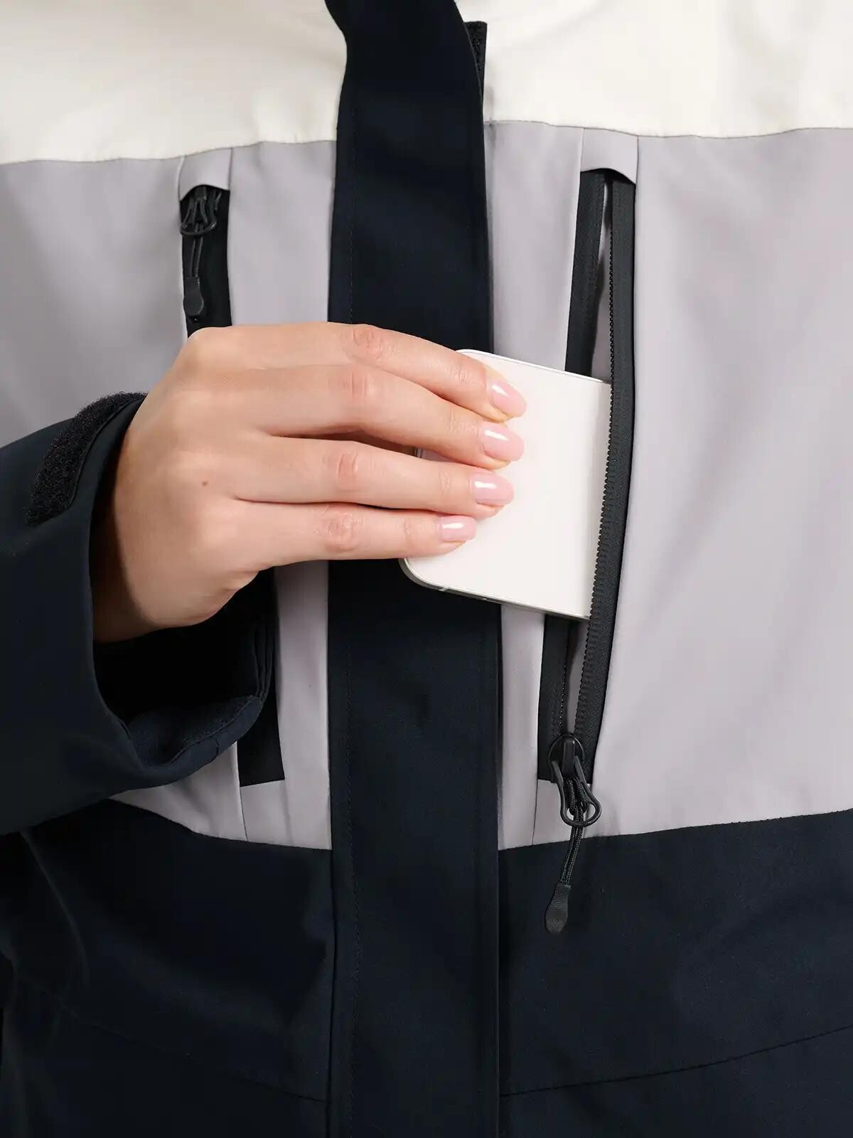 Vnější kapsy na zip, kapsa na skipas, vnitřní kapsa na brýle i vnitřní kapsa na zip zajišťují dostatek úložného prostoru.