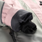 Bunda má odepínatelnou kapuci, sněhový pás, odvětrávání v podpaží a 7 praktických kapes, včetně kapsy na skipas, na brýle i s klíčenkou. Rukávy jsou vybavené manžetami se suchým zipem a vnitřní elastickou manžetou s otvorem na palec. Dolní lem lze snadno stáhnout, bunda se dá také připnout ke kalhotám.