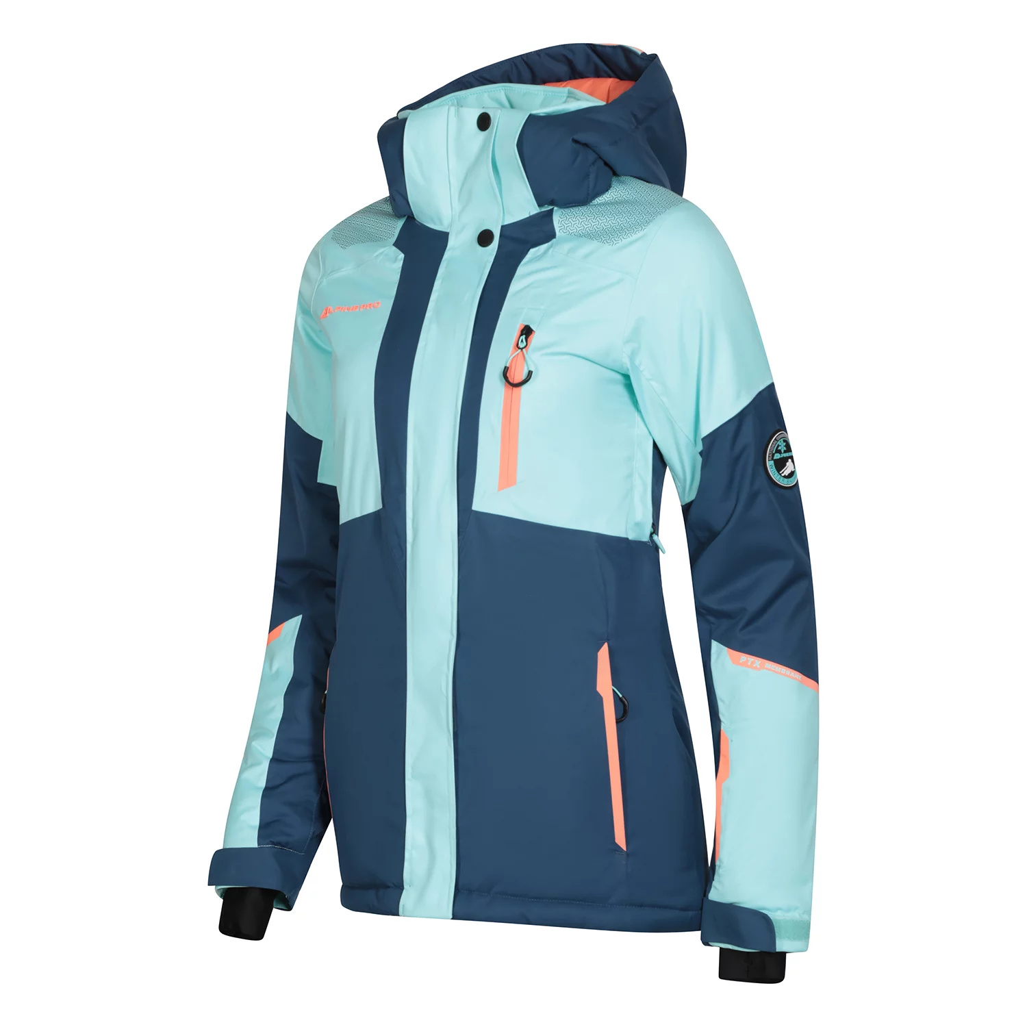 Dámská lyžařská bunda ALPINE PRO DEARA je ideální třetí vnější vrstvou, která vás ochrání před větrem i vodou díky membráně PTX SNOW s vodním sloupcem 10 000 mm a paropropustností 10 000 g/m²/24h. Bunda má celkem 7 praktických kapes, včetně náprsní s voděodolným zipem, kapsy na rukávu pro skipas a vnitřní kapsy na lyžařské brýle.
