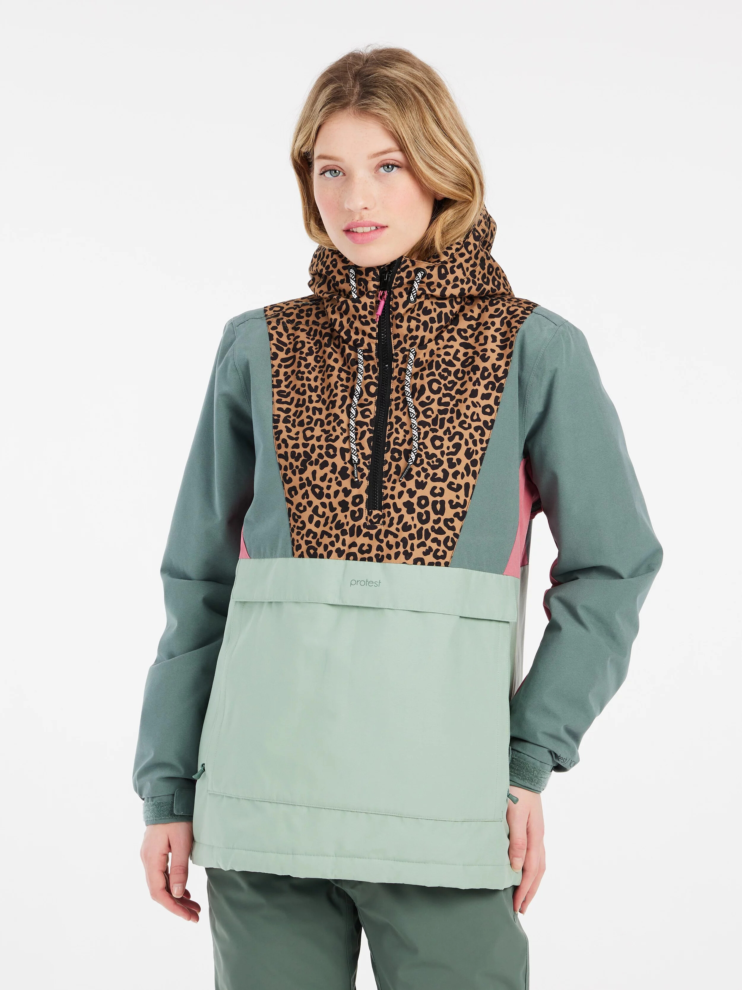 Polovzdorné manžety s háčkovým uzávěrem, ventilační zipy pod pažemi a kapsa typu kangaroo pomáhají udržet teplo, suchost a optimální teplotu.