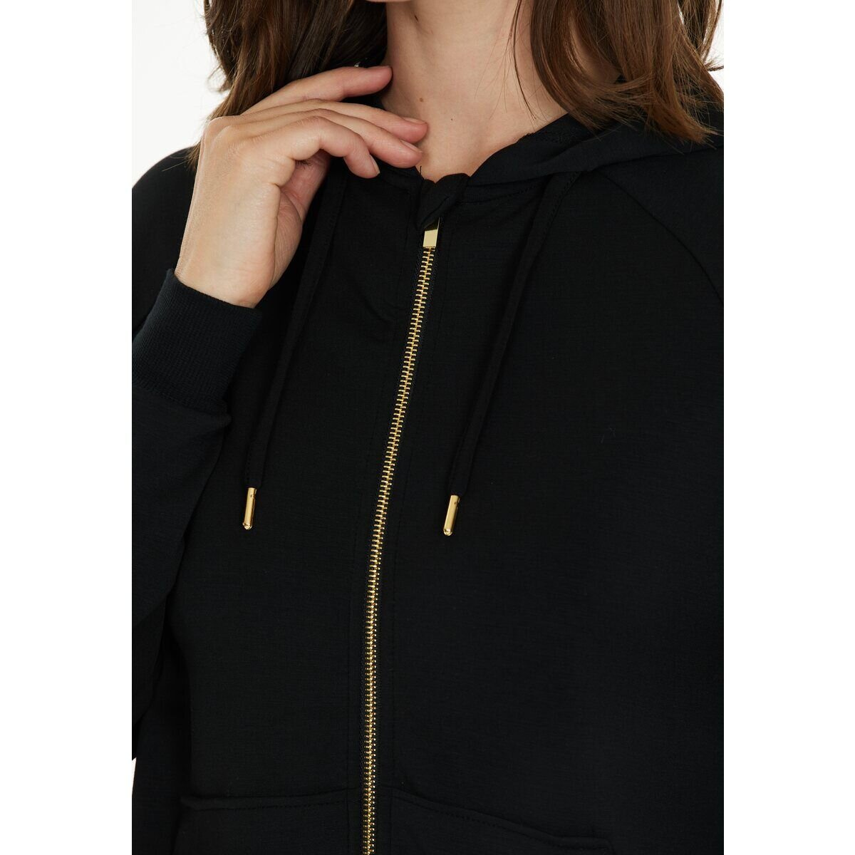 Dámská mikina na zip s nastavitelnou kapucí z velice příjemného materiálu.