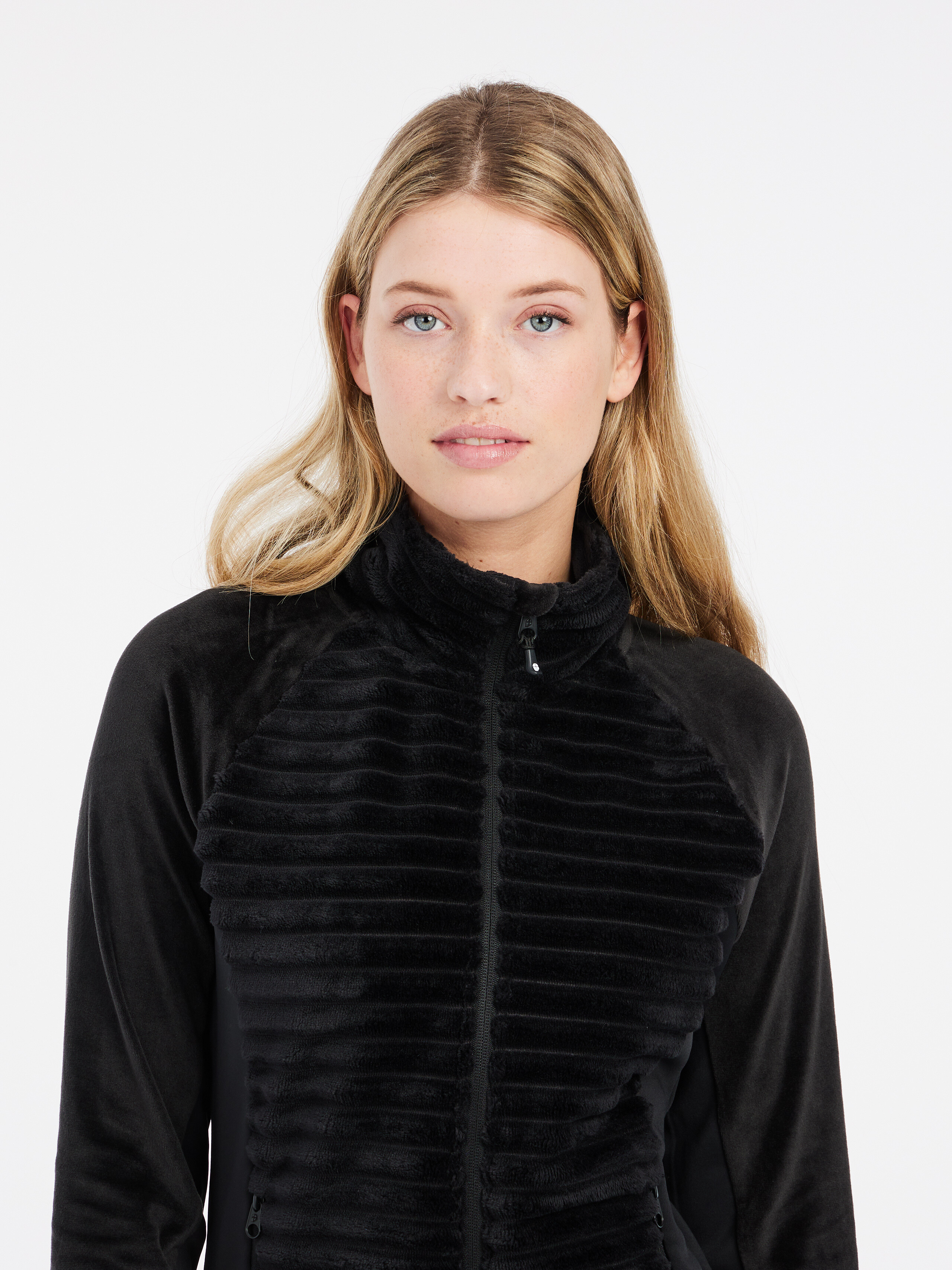 Dokonalým zakončením stylového vzhledu je stojací límec, který chrání před chladem.