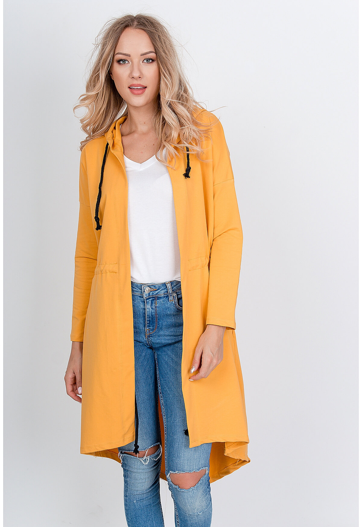 Dámská oversize mikina s nápisem "NICE" na zádech - hořčicová