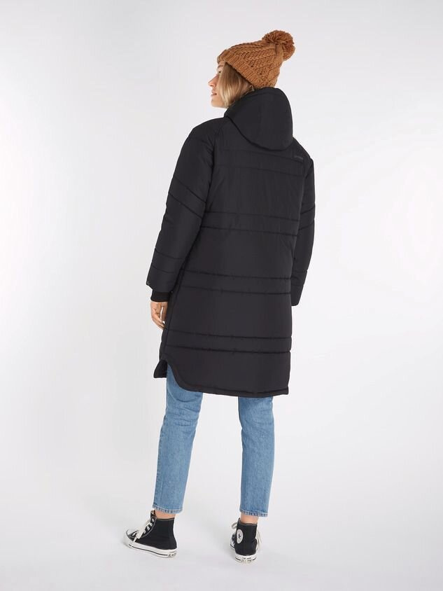 Volný střih bundy Prtadorey je prošívaný, což je chytrý způsob, jak přidat modelu na hřejivosti, protože vzduch je zachycen mezi stehy a pomáhá maximalizovat izolaci.