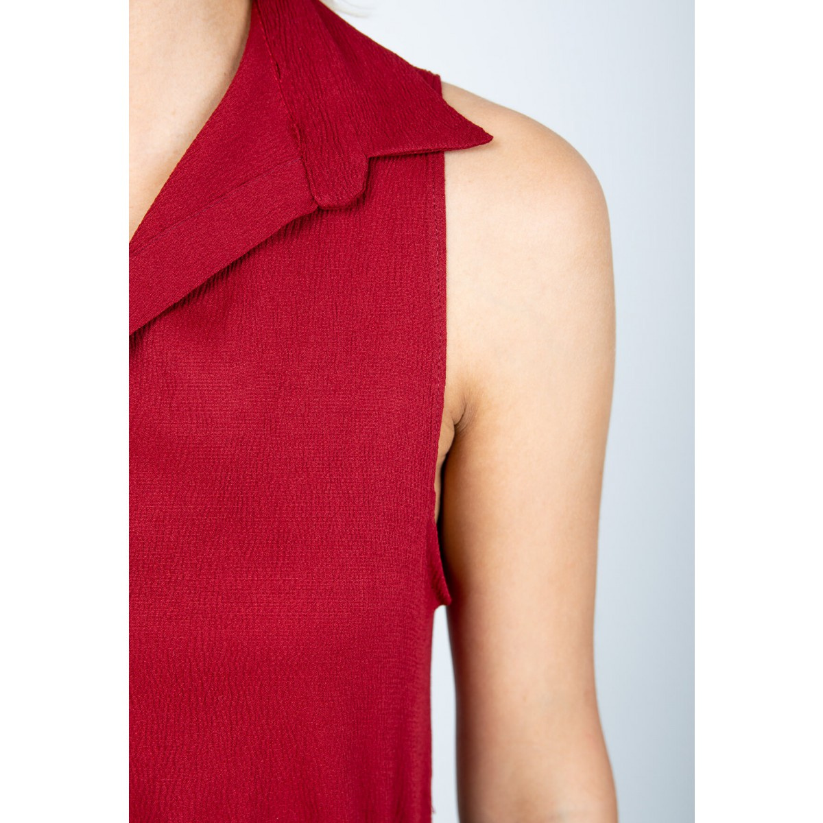 Dámská plisovaná košile bez rukávů - vínová