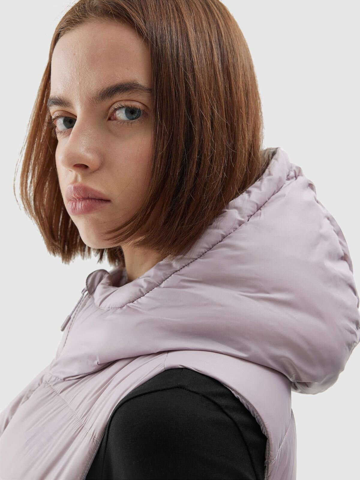 Dámská prošívaná vesta značky 4F. Vyplněna lehkým syntetickým peřím, které podpoří váš tepelný komfort při každodenních aktivitách. Vnější materiál je vybaven hydrofobní impregnací, která zpomaluje absorpci vlhkosti. Péřová vesta má také pohodlnou kapuci s vysokým stojáčkem, který Vás ochrání před větrem a kapsy, do kterých si můžete uložit drobnosti.