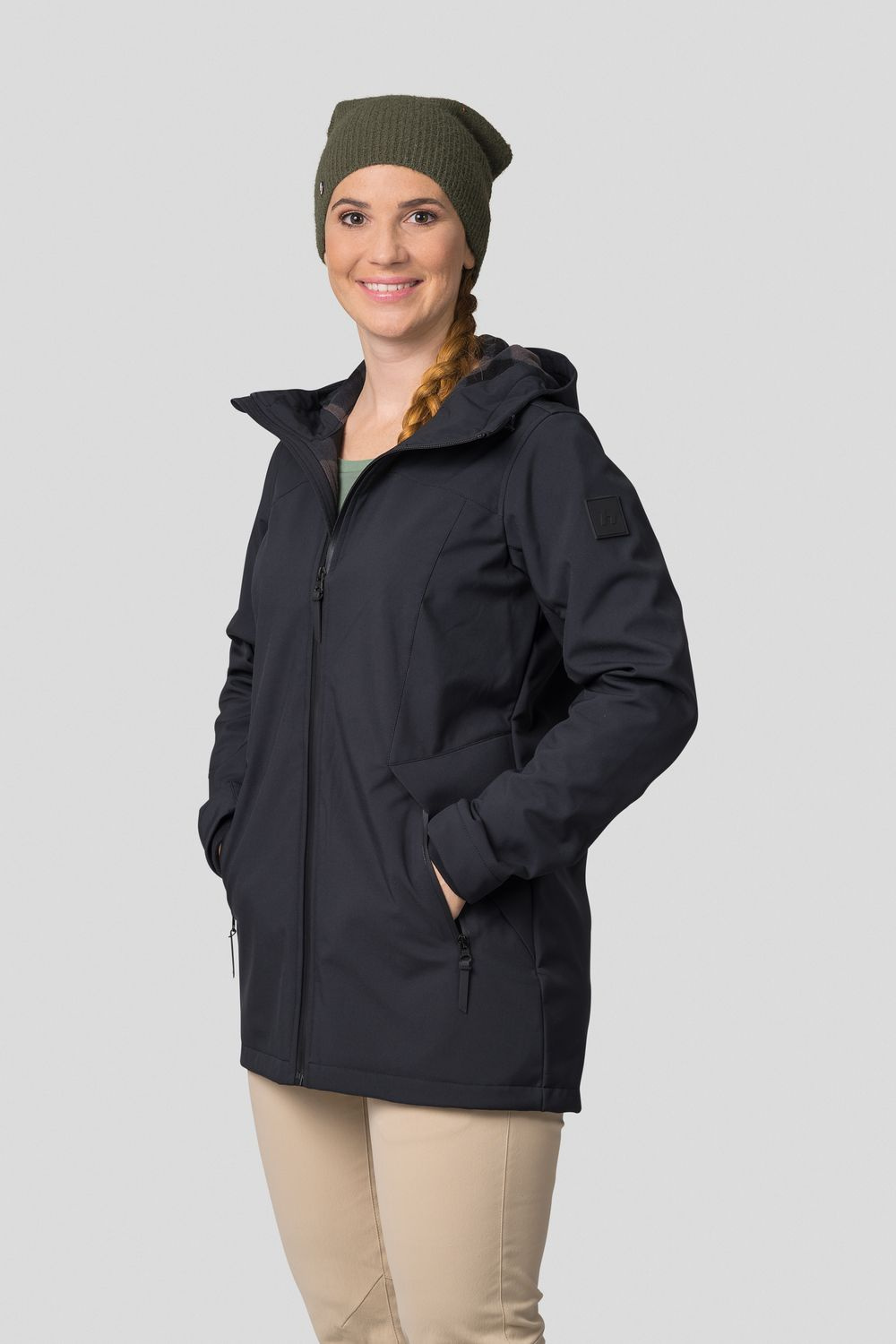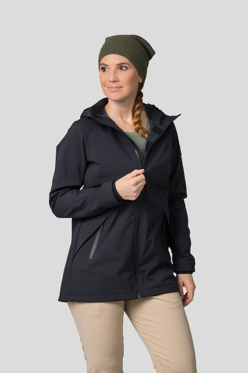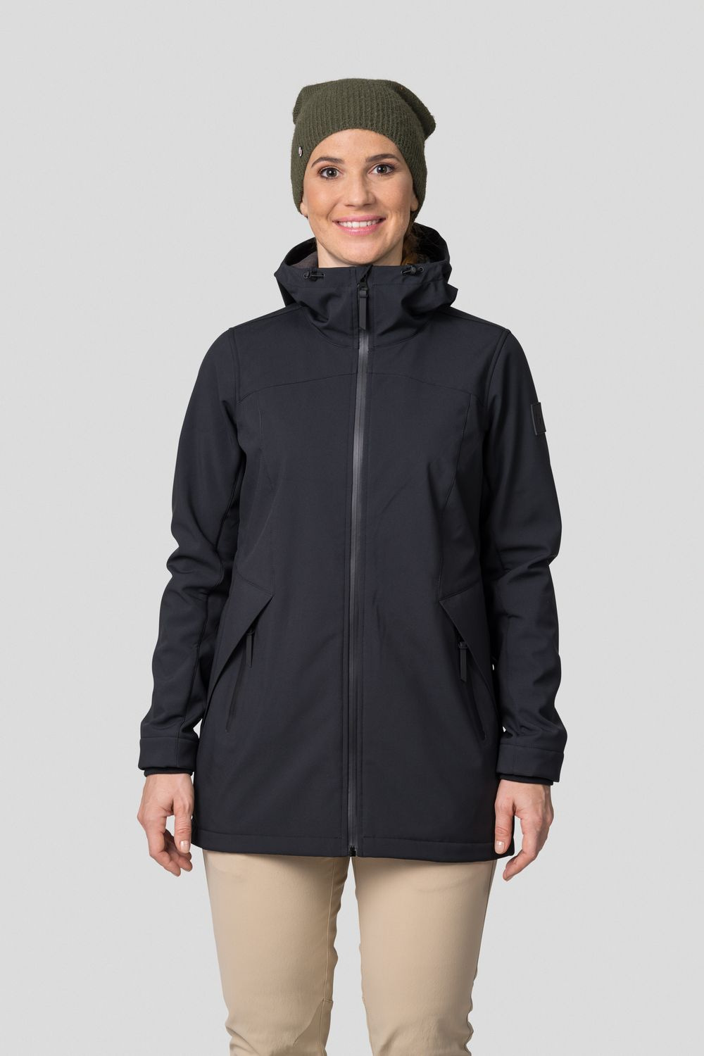 Tato dámská softshellová, volnočasová bunda Hannah Akame se hodí jak do města, tak i na lehčí trek. Akame je z materiálu Softshell s membránou 8 000 s DWR úpravou. Je lehká, větruvzdorná, ale zároveň prodyšná. Pohodlný střih Regular fit sedí většině typů postav, spodní okraj bundy je regulovatelný, stejně jako kapuce. Rukávy jsou anatomicky tvarované a zakončené rukávovou manžetou. Záda v teple zajistí prodloužená délka a fleecová podšívka. Bunda má dvě přední hlavní kapsy na zip.