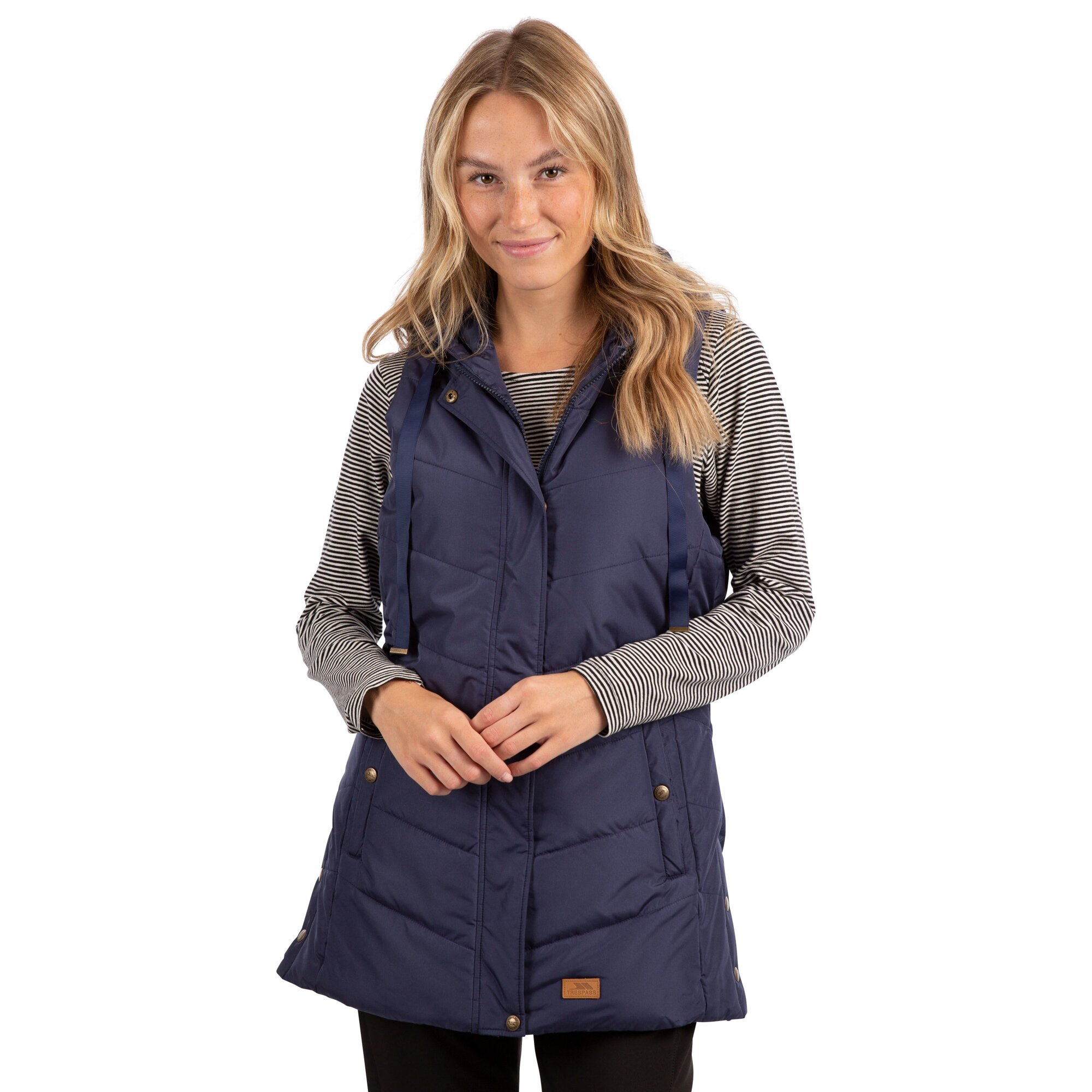 Dámská prošívaná vesta značky Trespass s kapucí a syntetickou výplní.