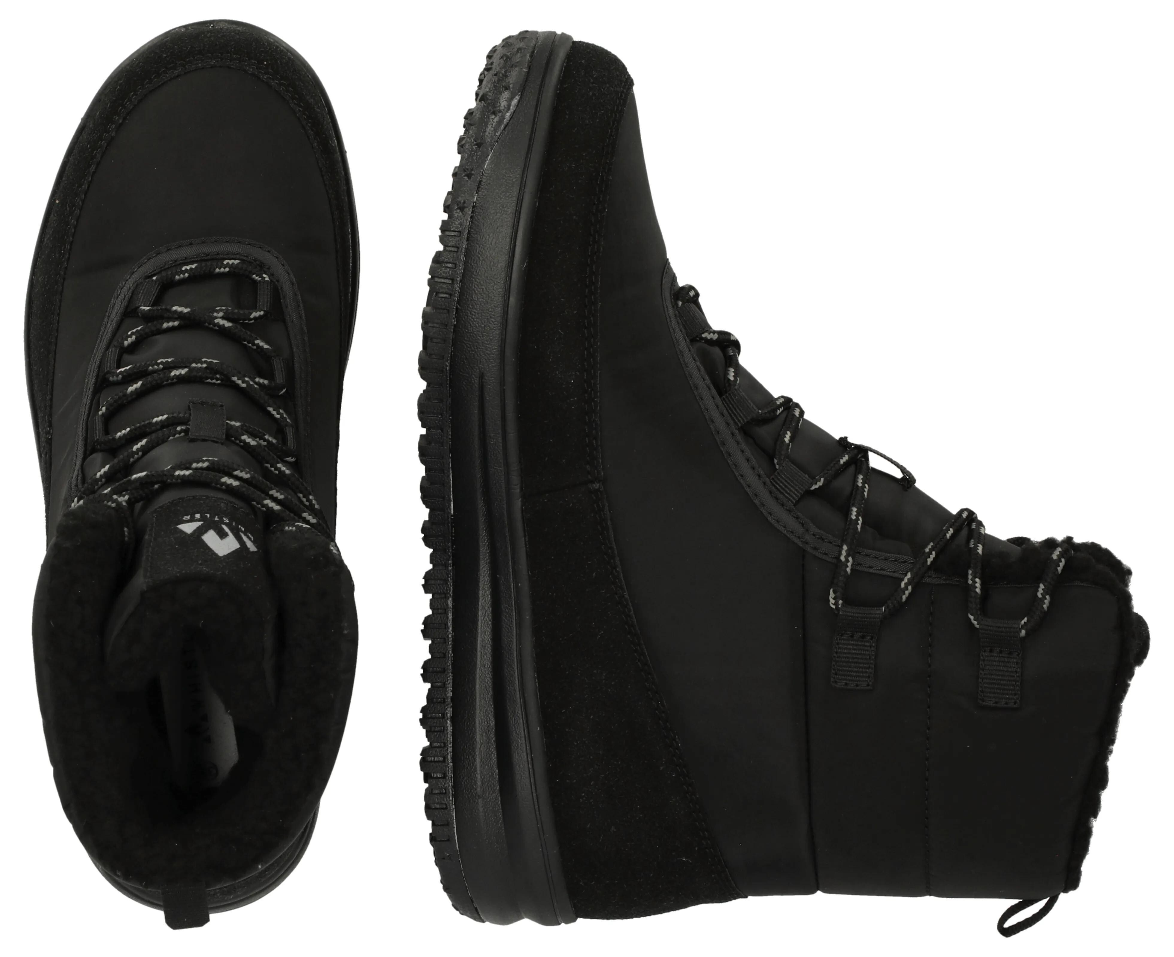 Praktické šněrování umožňuje snadné přizpůsobení tvaru nohy, zatímco robustní podešev s výrazným vzorkem nabízí stabilní krok a jistotu i na zasněženém nebo zledovatělém povrchu.