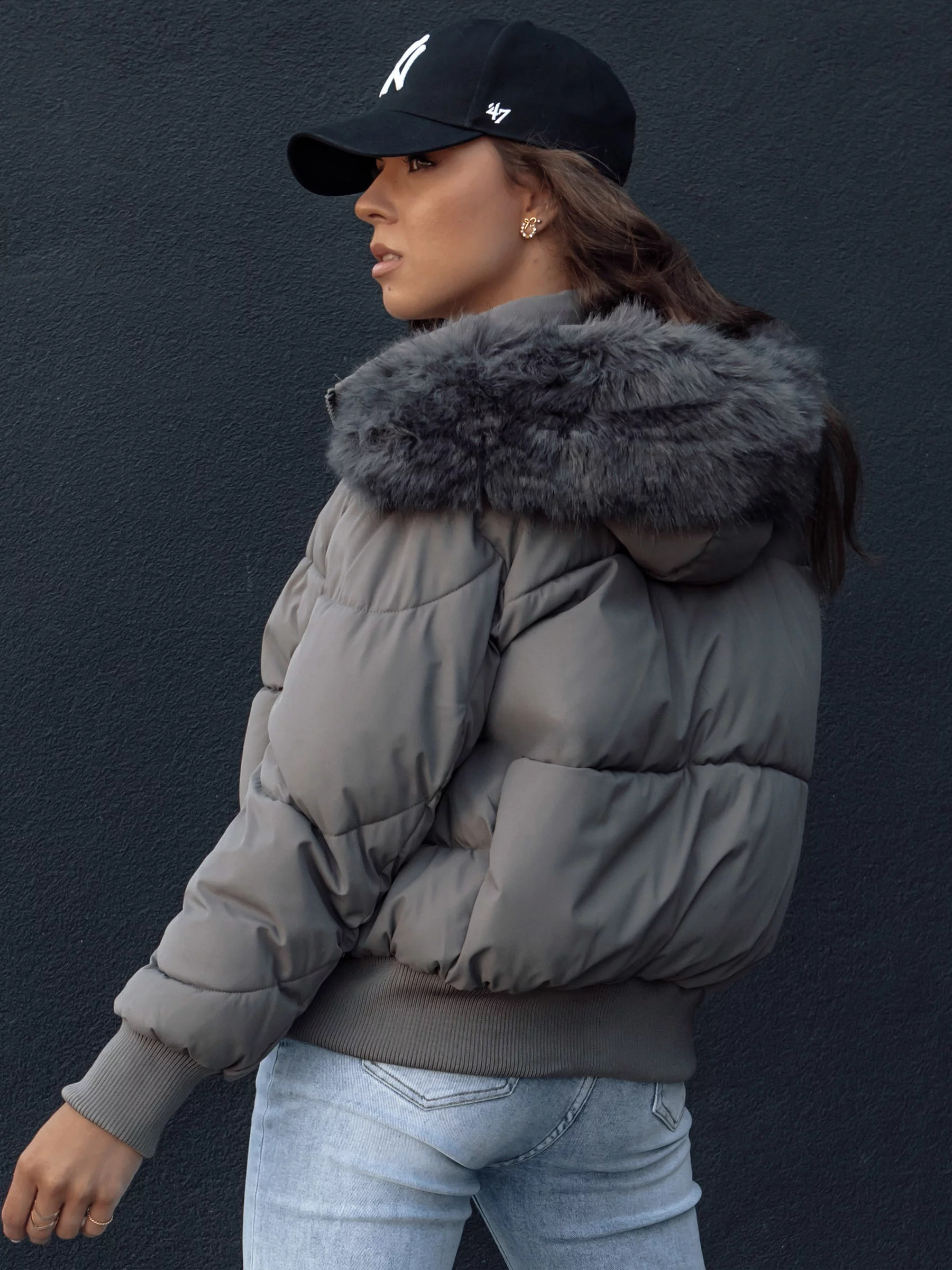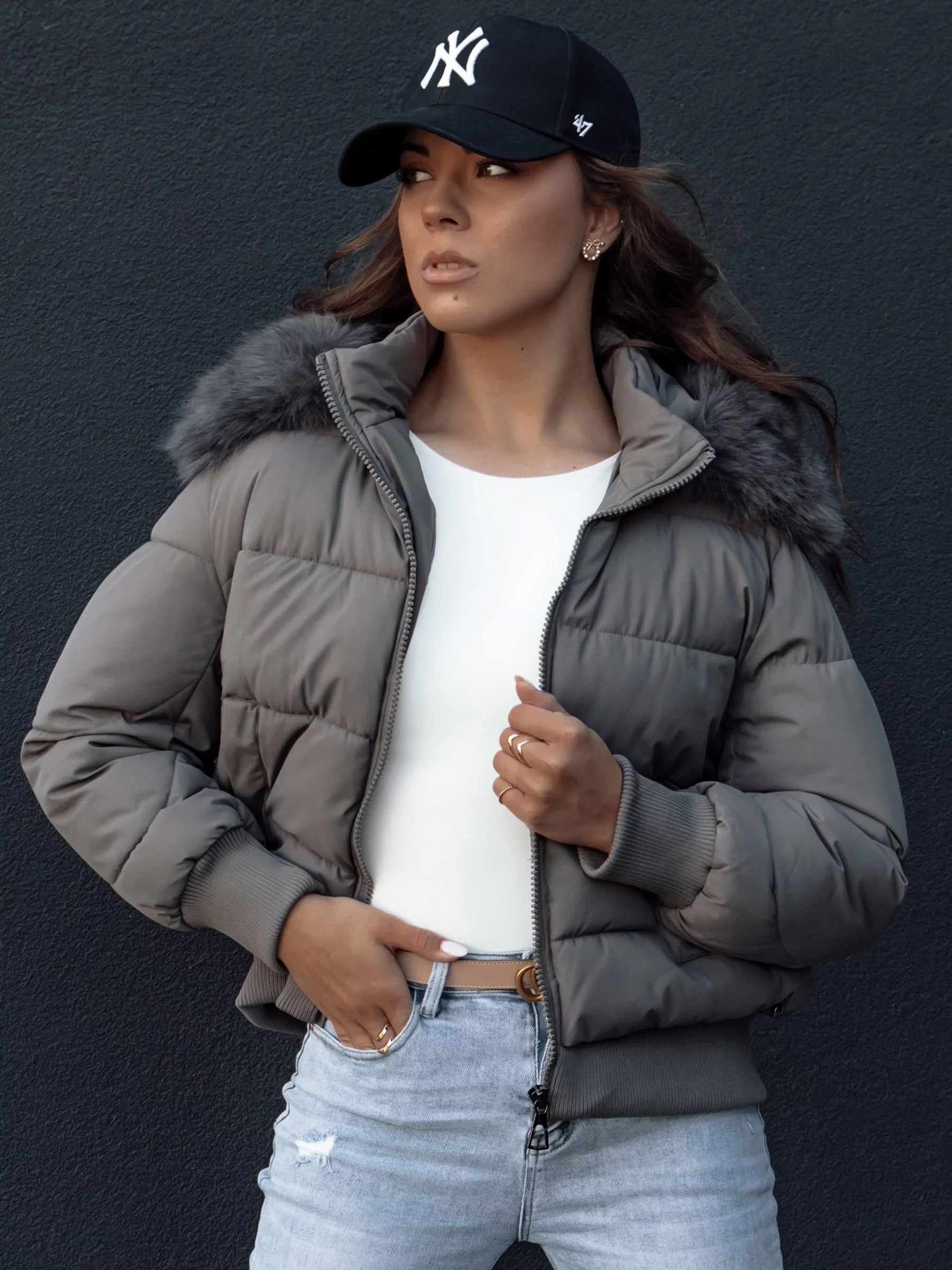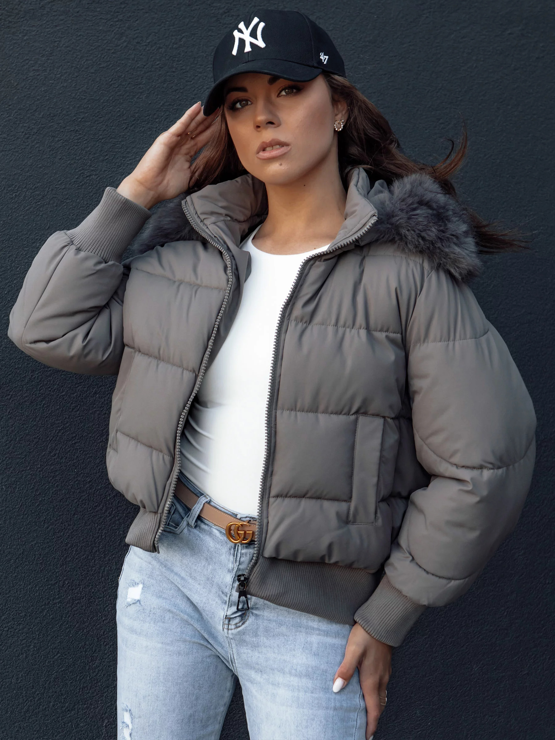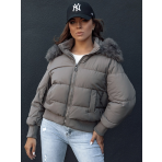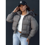 Dámská zimní prošívaná bunda s kožešinou COLDPACK tmavě šedá Dstreet TY4428 Velikost: XXL