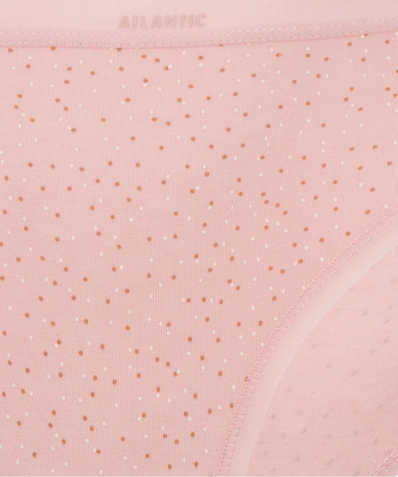 Trojbalení obsahuje dámské kalhotky v těchto barvách: tmavě béžová - pokrytá drobnými srdíčkovými vzory, růžová - pokrytá tečkami a tmavě amarantová - s měsíci a planetami. Kalhotky mají sportovní charakter. Jejich pas je nízko a boky mají univerzální šířku. V pase jsou kalhotky zakončeny nekompresivním lemováním s nápisy Atlantic. Naše látka je také extrémně šetrná k pokožce - je prodyšná, zabraňuje nadměrnému pocení těla a nezpůsobuje kožní alergie. Poskytuje také maximální pohodlí při nošení.