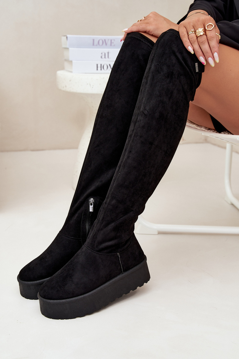 Dámské kozačky nad kolena na platformě Big Star – černé Velikost: 38