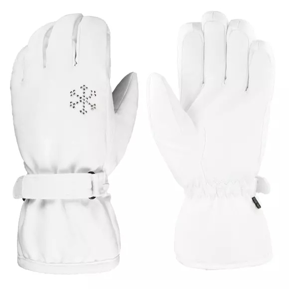 Lyžařská rukavice pro ženy Eska Elite Shield se vyznačuje lesklým vločkovým motivem vyrobeným z originálních krystalů Swarovski®.