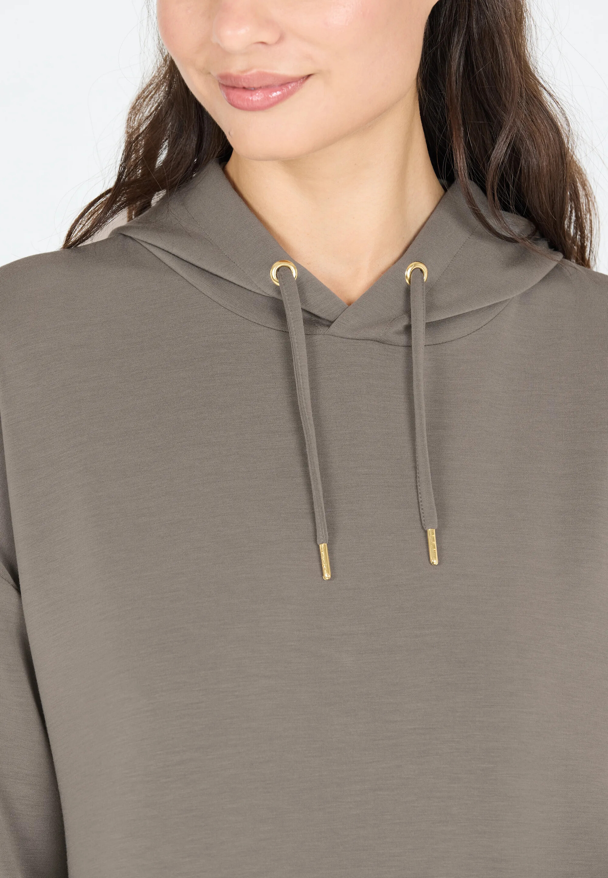Oversized střih s dlouhými rukávy a kapucí dodává šatům ležérní vzhled, zatímco velká klokaní kapsa v přední části přidává praktický prvek.