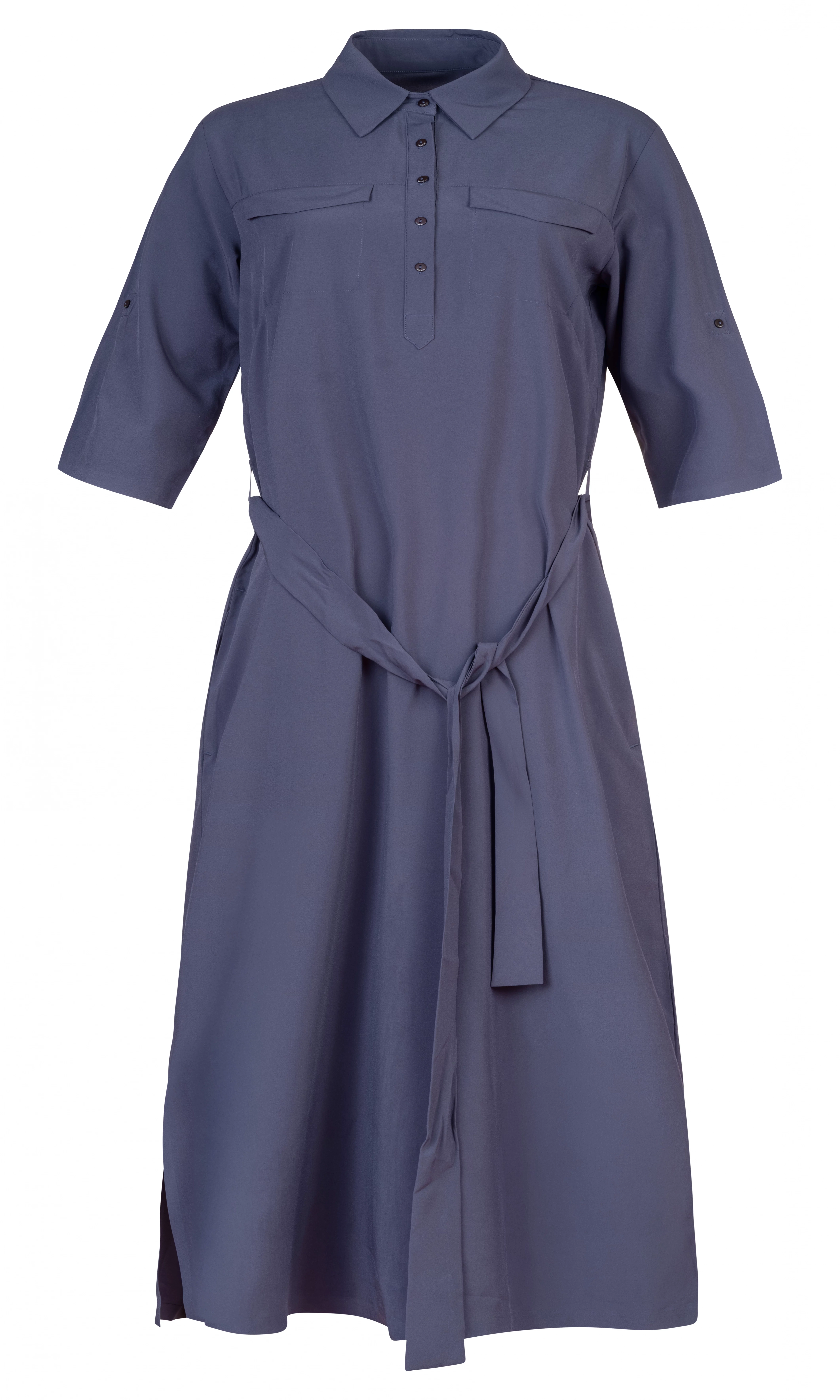 Dámské lehoučké šaty s delším rukávem jsou vyrobeny z funkčního a vysoce elastického a prodyšného materiálu AFT Stretch. Neuvěřitelně lehký, jemný a příjemný funkční elastický materiál oceníte během horkých letních dní. Elegantní košilový delší střih nad kolena s páskem v pase.Rukávy lze nosit v delším provedení či ohrnout na kratší délku a zapnout na knoflíček. Lepený dolní kraj i lem rukávů dodává šatům čistý vzhled. Jednobarevné provedení a elegantní styl v kombinaci s funkčností a pohodlím oceníte pro běžné nošení, cestování a volný čas.