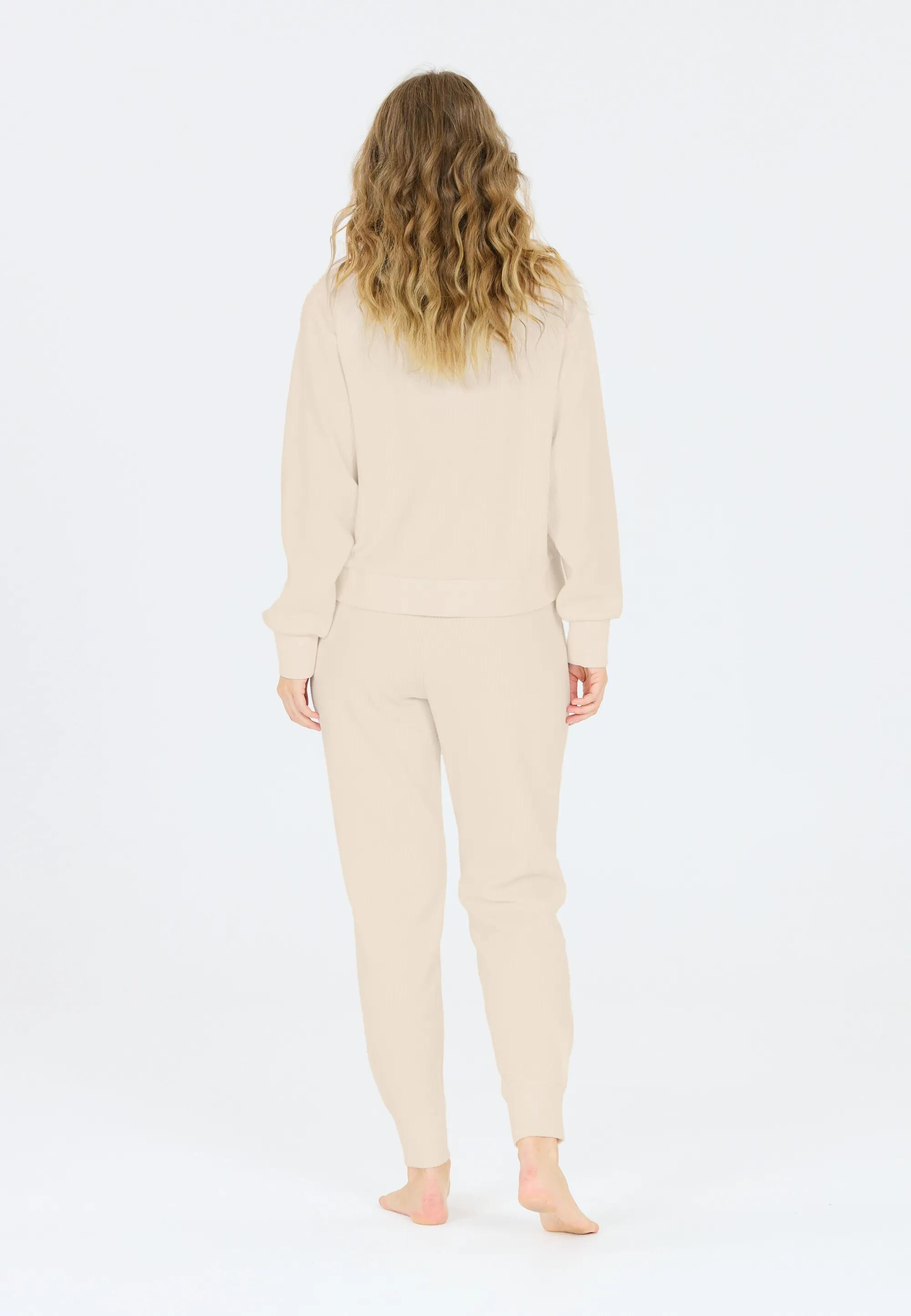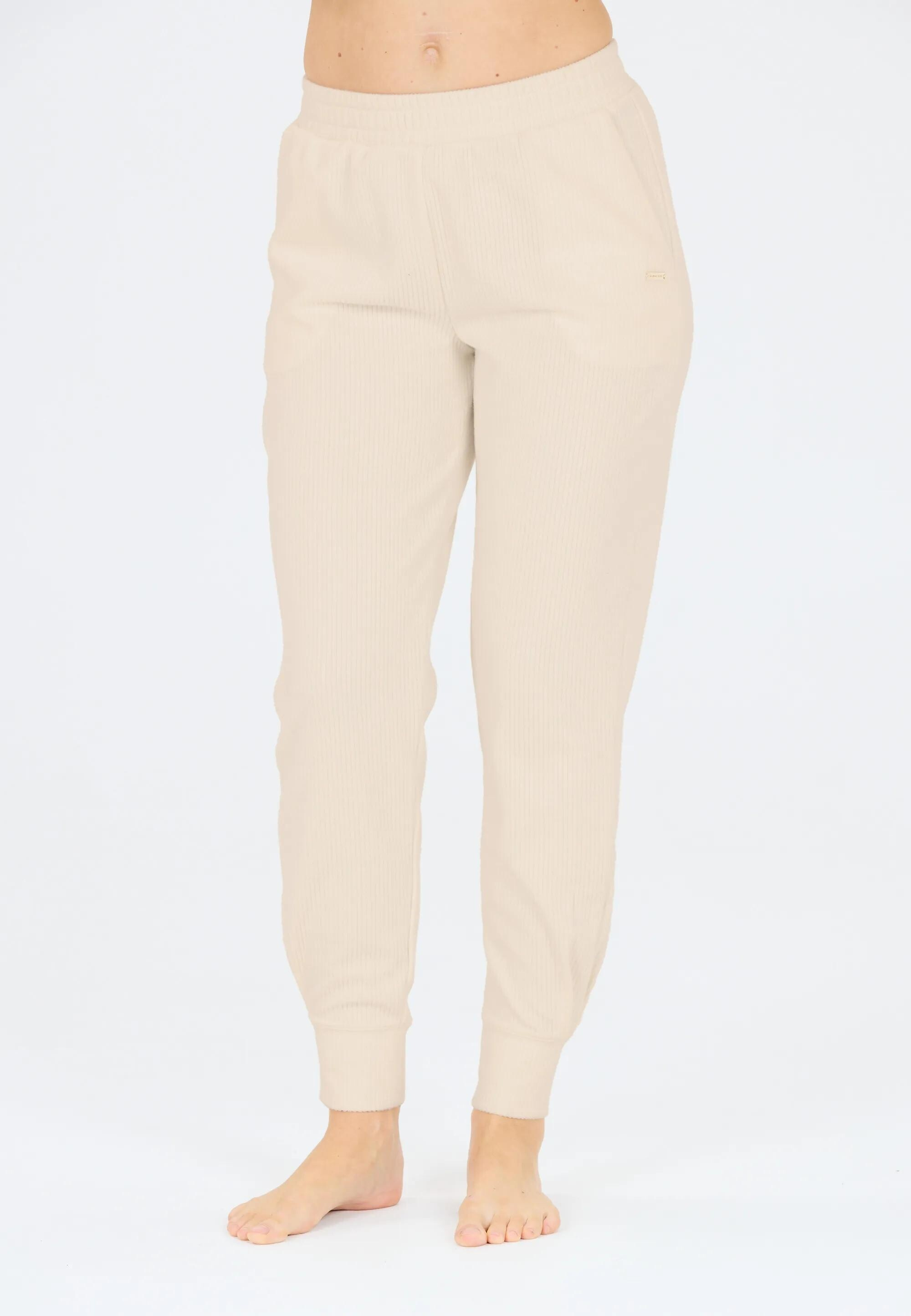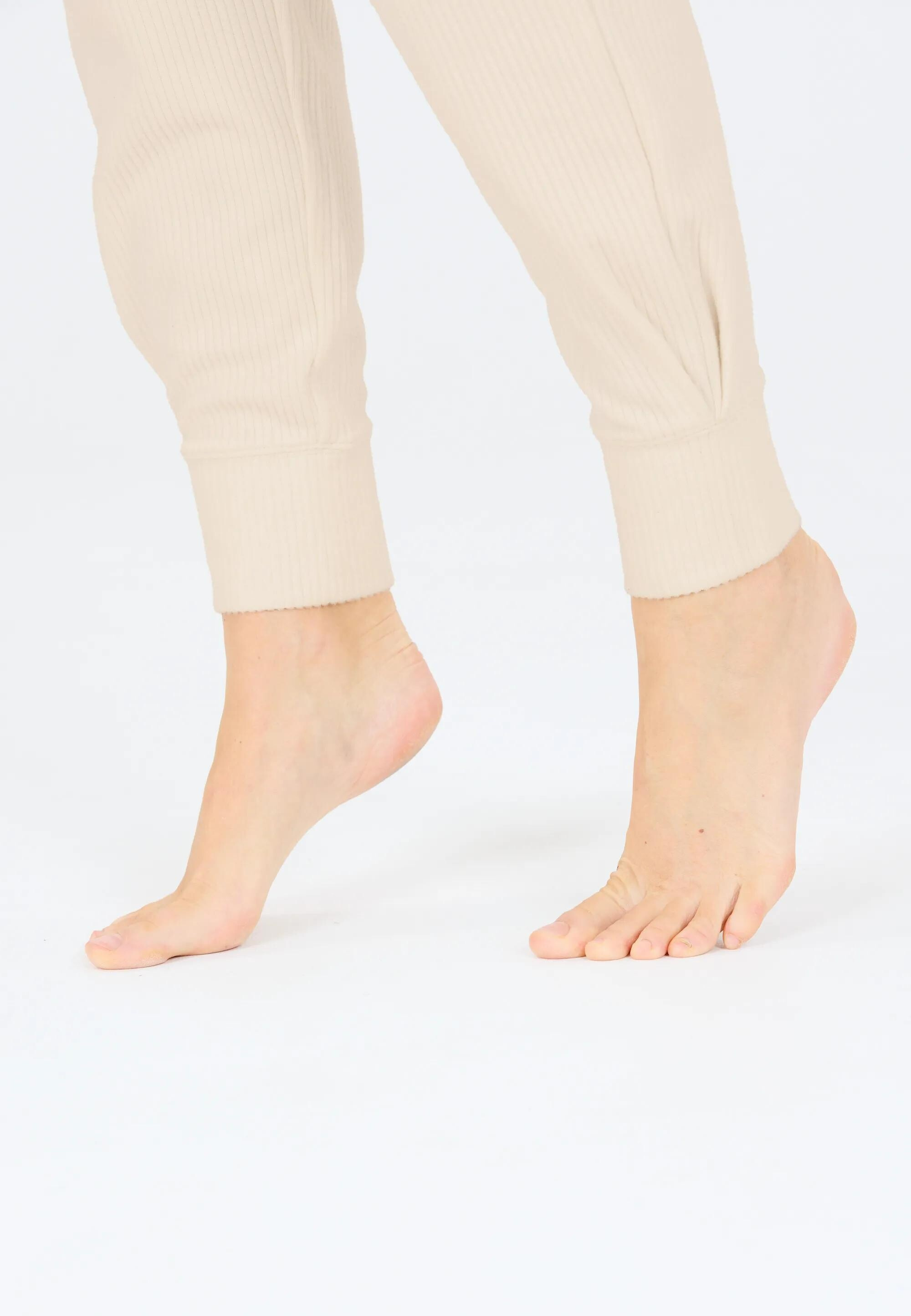 Tyto béžové dámské žebrované tepláky kombinují pohodlí s moderním minimalistickým stylem.
