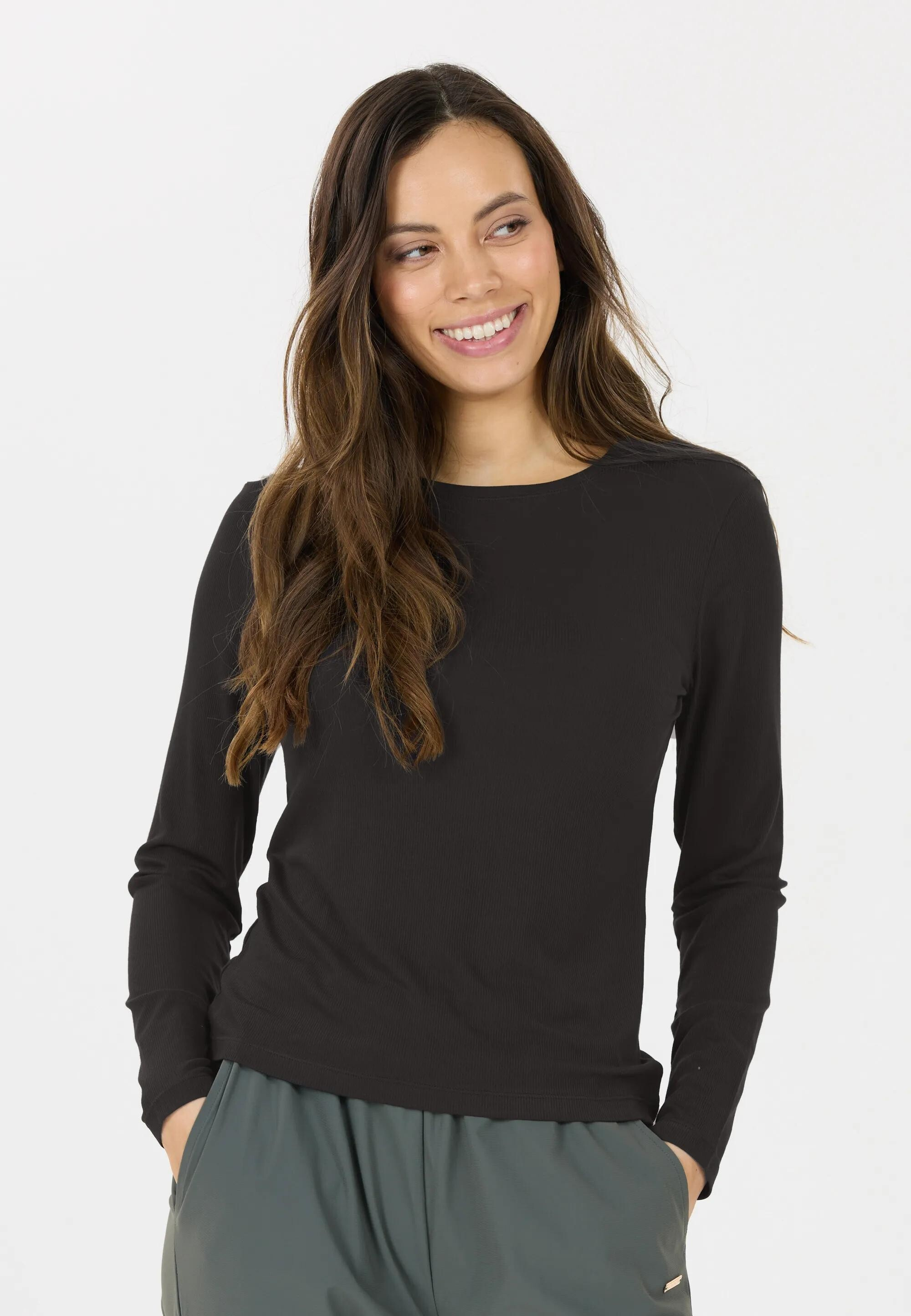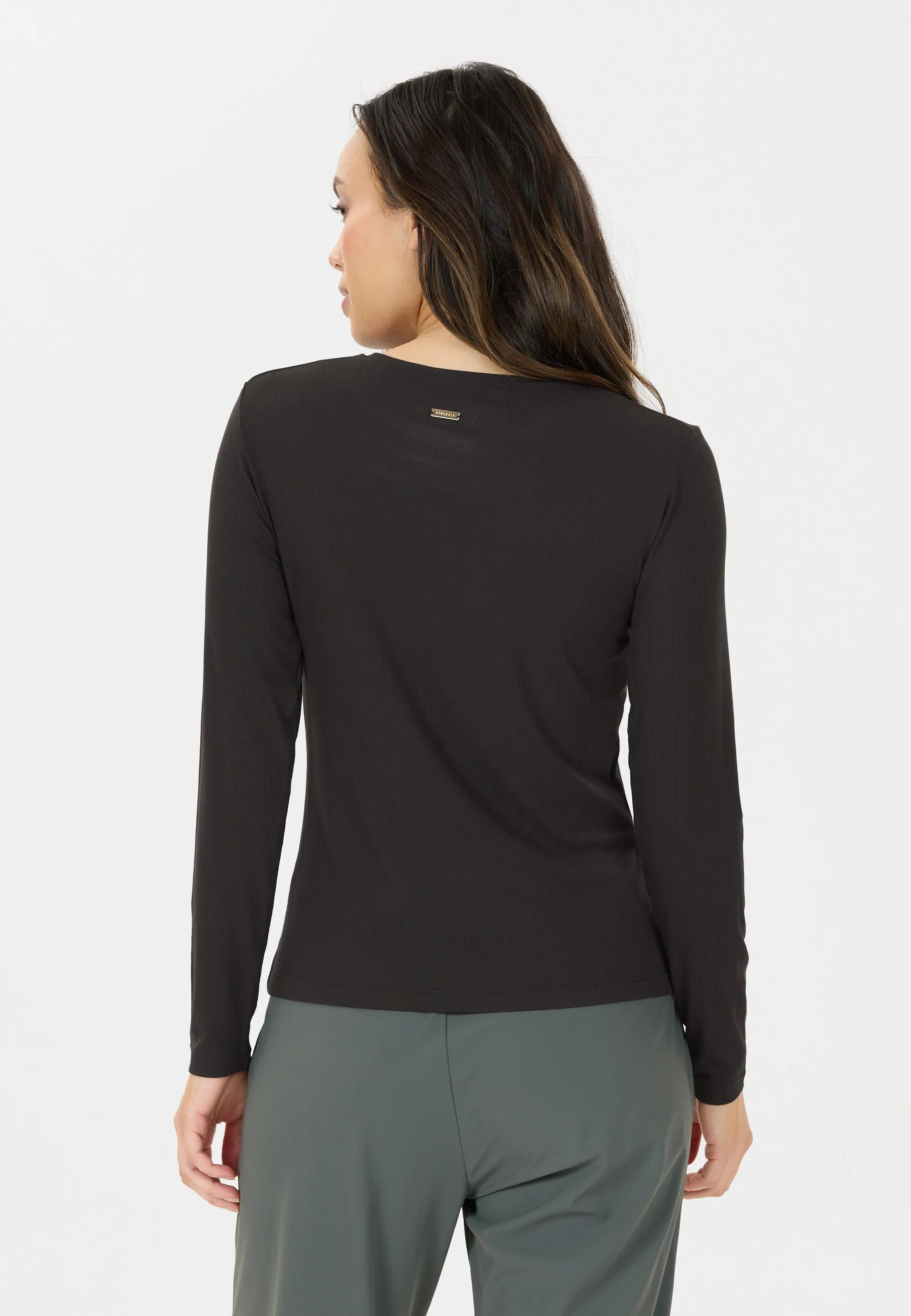 Dámské tričko s dlouhým rukávem v jemně žebrované struktuře je elegantním a pohodlným základem každodenního šatníku.