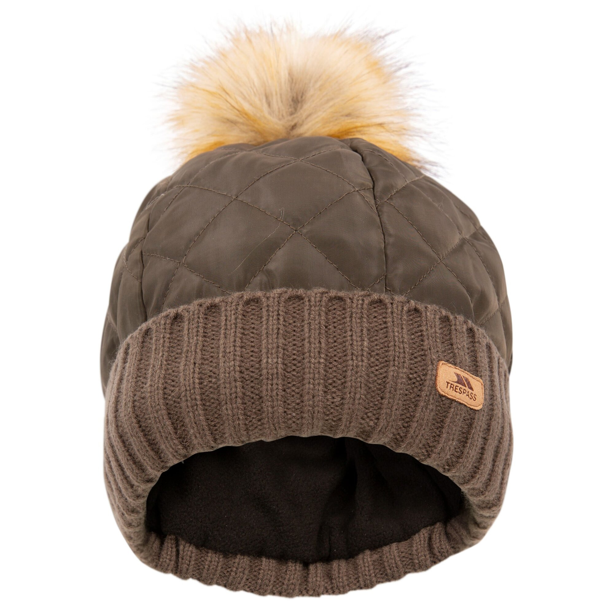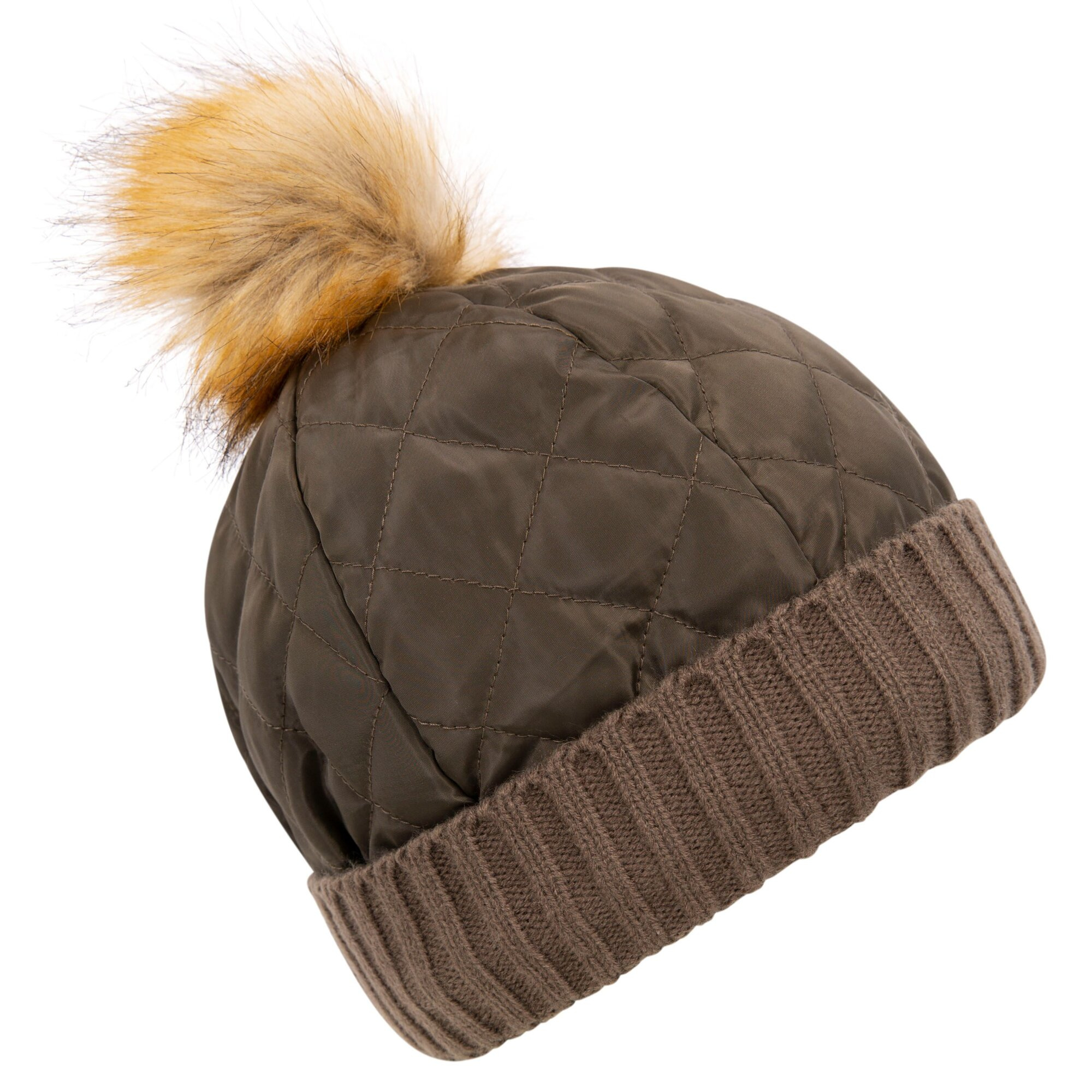 Dámský kulich Trespass Potty z hřejivé tkaniny s bambulí, ohrnovací manžetou v prošívaném designu.