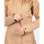 - Kabát v délce pod zadek, zdobí kovové zipy na kapsách, výšivky a dvojité prošívání, které dodávají vašemu outfitu šmrnc.