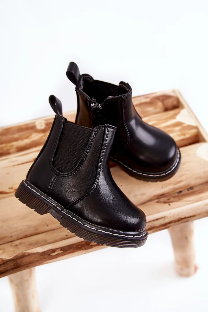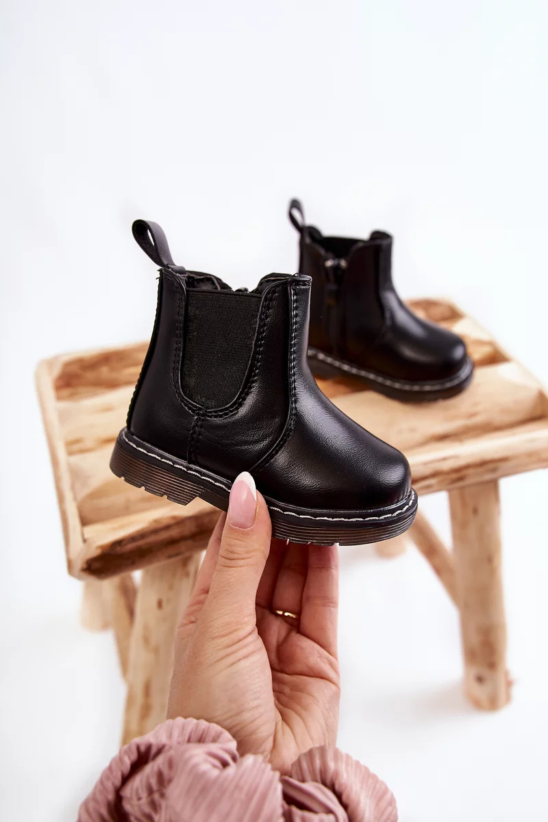 Klasické, dětské kozačky jsou vyrobeny z eko kůže. Mají kotníkový svršek s bočním zipem. Nasazené na plochém podpatku a protiskluzové podrážce. Boty jsou zateplené dekou na boty. Podrážka je navíc olemovaná nití. Pohodlný model, který se hodí k mnoha stylům! Při výběru velikosti použijte tabulku velikostí.
