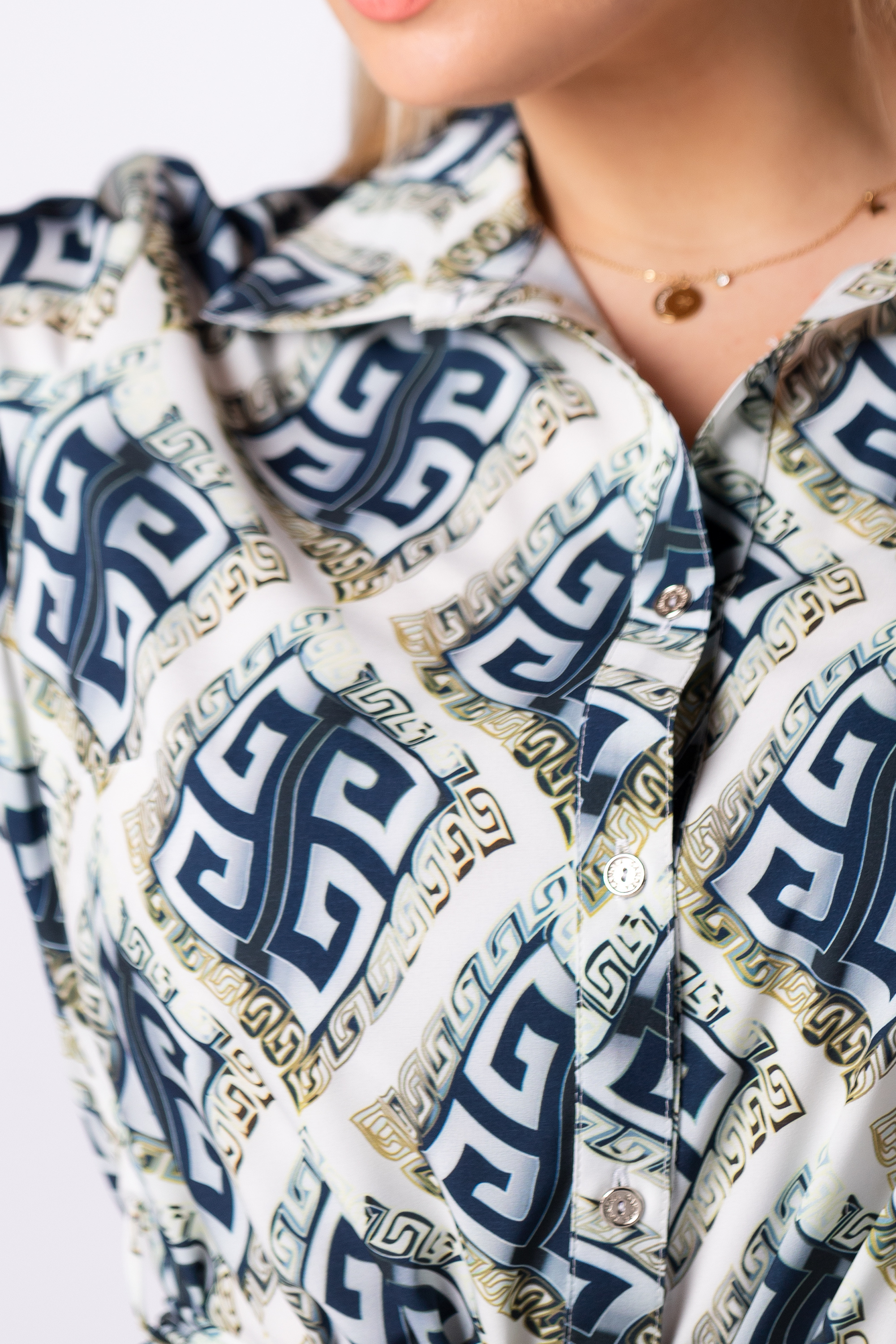 Subtelny nadruk na całej powierzchni bluzki.