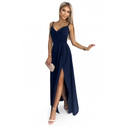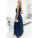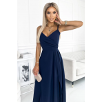 Elegantní maxi šaty na ramínka Numoco CHIARA - tmavě modré Velikost: XL