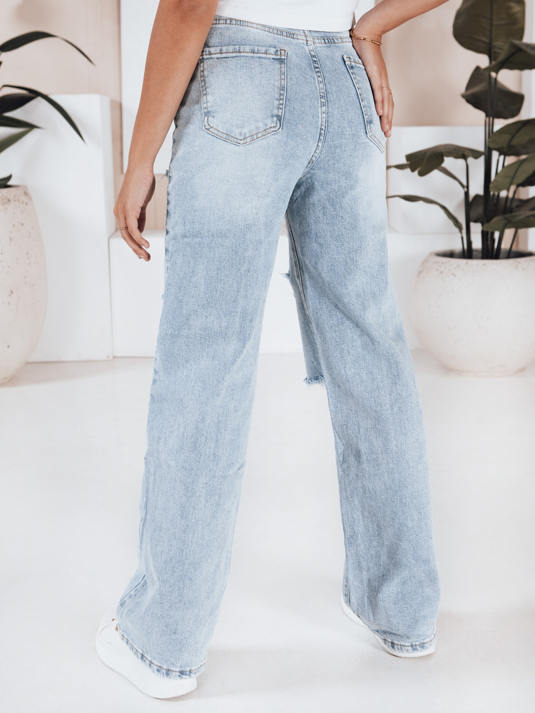Jeansy damskie z dziurami wide leg niebieskie UY2801