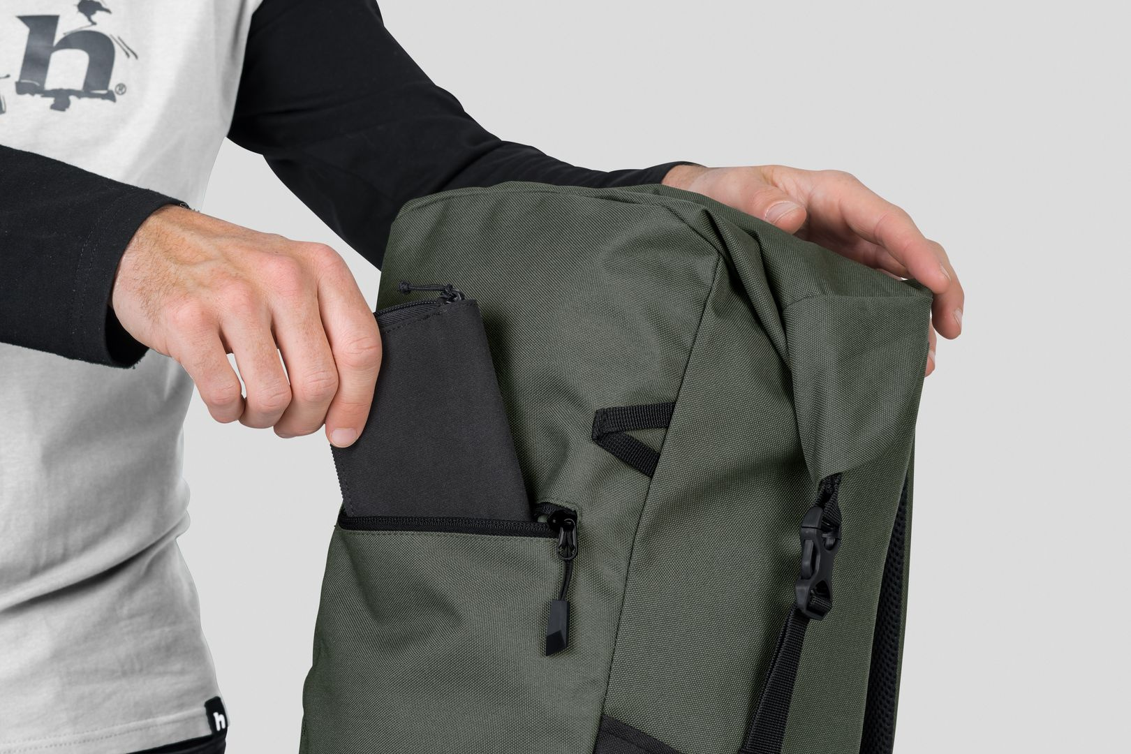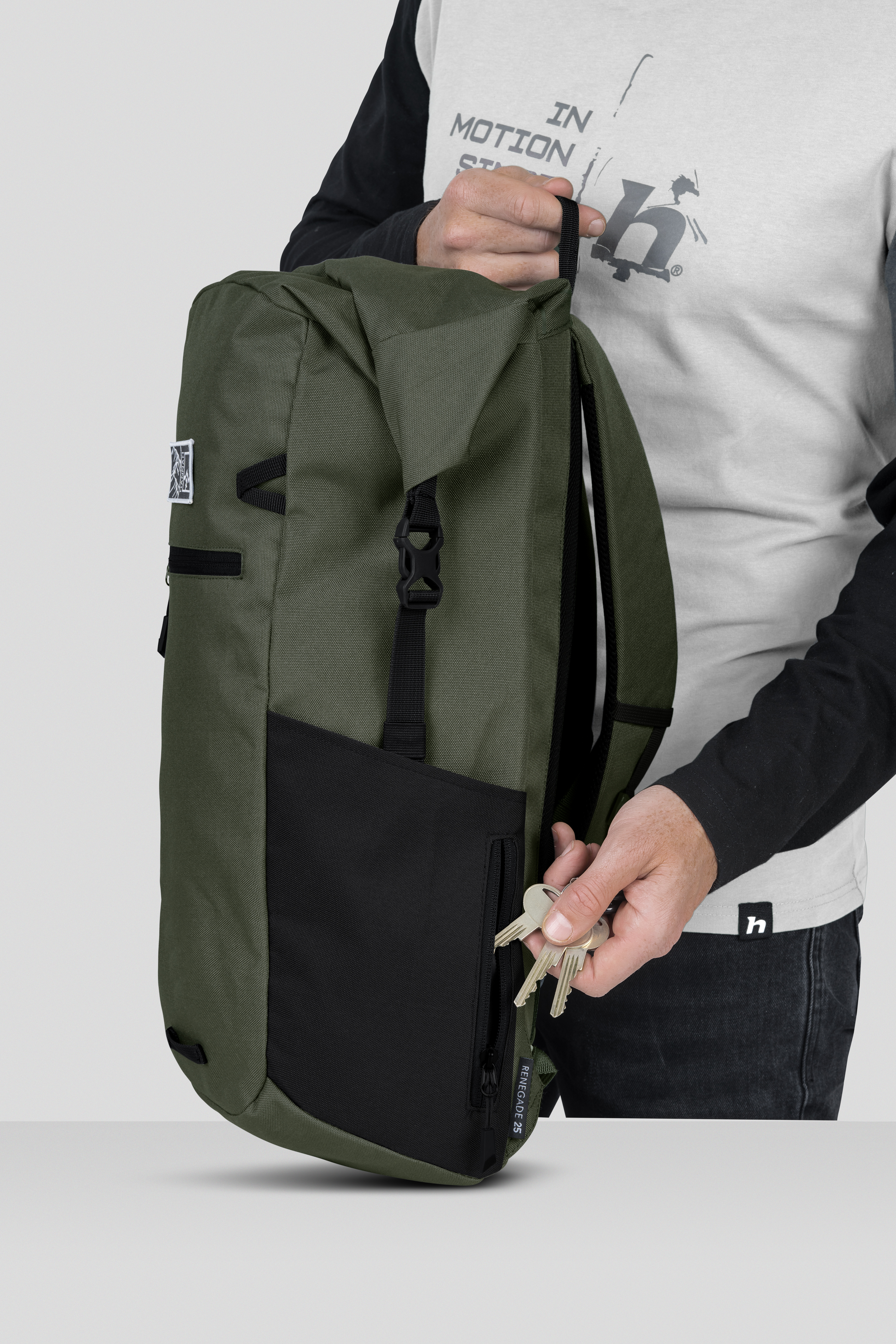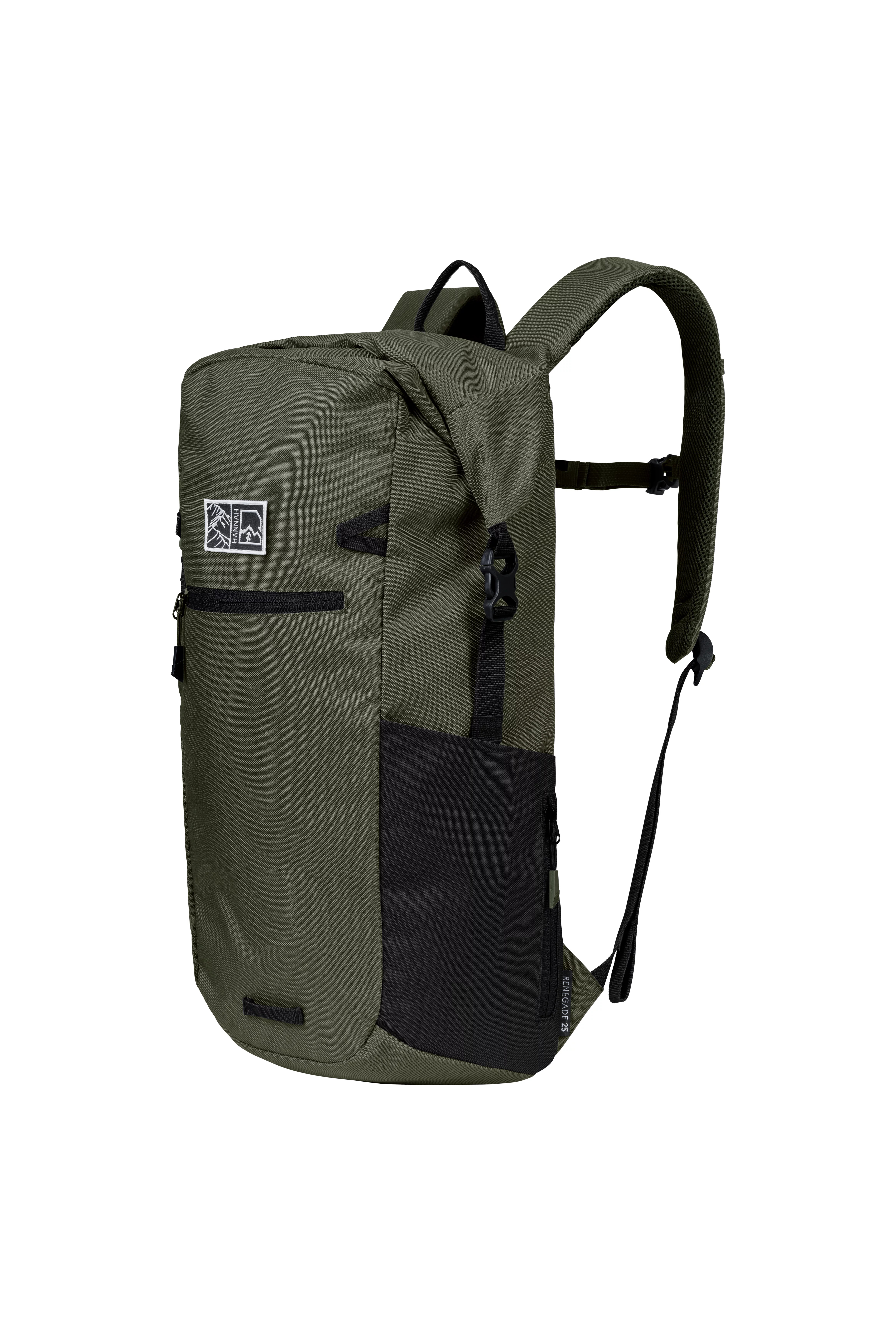 Jednokomorový volnočasový batoh Hannah Renegade 25 je tím správným společníkem pro volný čas i na cesty do práce. Batoh v sobě skloubí zajímavý design a praktickou funkčnost. Dominantním prvkem je zavírání vnitřního prostoru rolováním. Uvnitř se nachází polstrovaná kapsa na notebook a kapsa s organizérem, která je krytá víkem. Vpředu najdete další kapsu na zip. Na zádech batoh perfektně sedí díky polstrovaným ramenním popruhům a hrudnímu popruhu. Při večerních cestách oceníte úchyt na blikačku. Drobnosti si uschováte do dvou bočních kapes a nebudete tak muset složitě hledat klíče nebo kapesníky. Do hlavní komory se snadno dostanete i bočním vstupem. Unikátnost tohoto batohu spočívá v tom, že je vyroben z recyklovatelných 13 kusů PET lahví.