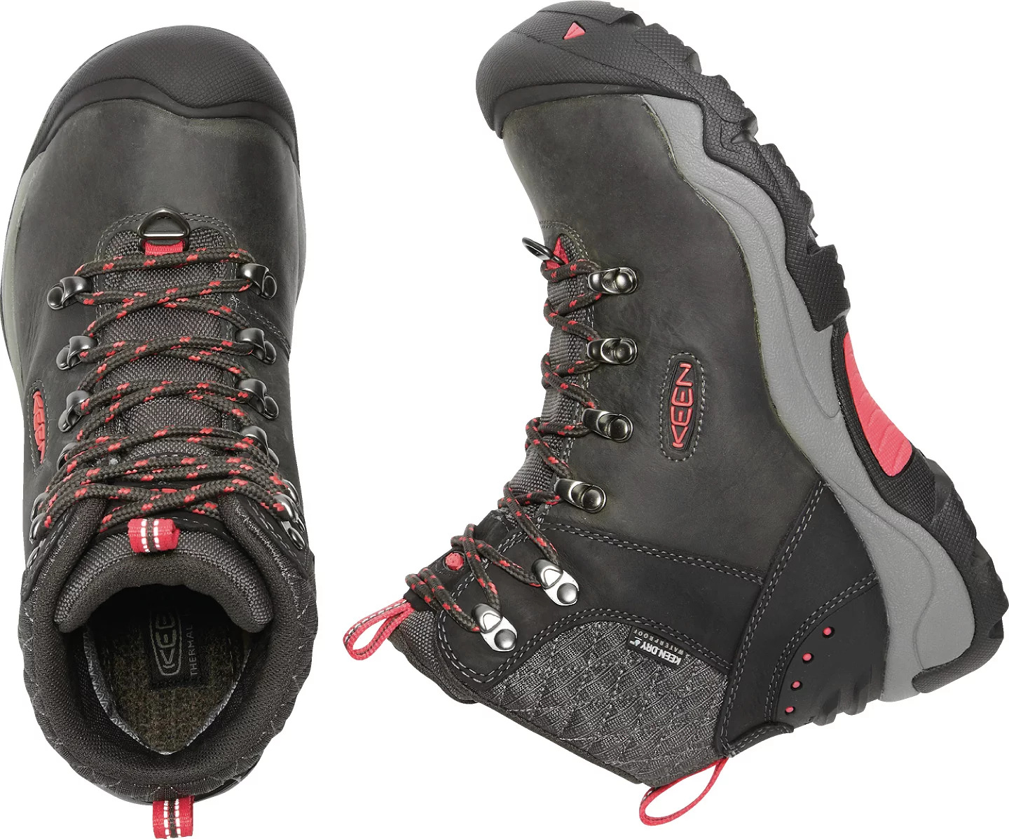 Revel jsou velmi oblíbené zimní zateplené boty pro všechny náročné vyznavače zimního trekingu. Tyto boty jsou ideální nejen pro turisty, ale i pro všechny ostatní, kteří pracují v zimním terénu. Třeba vlekaři ocení, že neuklouznou ani na zmrzlém sněhu díky speciální zimní podešvi s velmi hlubokým vzorkem. Proti nepříznivým klimatickým podmínkám vás dokonale ochrání kožený svršek z ekologicky zpracované silné kůže opatřené PFC free impregnací. Prodyšná, ale voděodolná membrána zaručí vašim nohám sucho i v mokrém sněhu. O teplo se postará patentovaná technologie, která využívá vzduchové kanálky ukryté v mezipodešvi, kde se zadržuje teplý vzduch ohřátý vašimi chodidly. Společně se zimní, vrstvenou vložkou a celkovým zateplením boty materiálem KEEN.WARM, vyrobeným z recyklovaného PET materiálu, si užijete přírodu i v krutém mrazu. Technologie: KEEN.DRY; ECO ODOR CONTROL; KEEN.WARM; KEEN.Polar Traction; KEEN.HEAT TRAPOLATOR; PFC FREE REPELENT