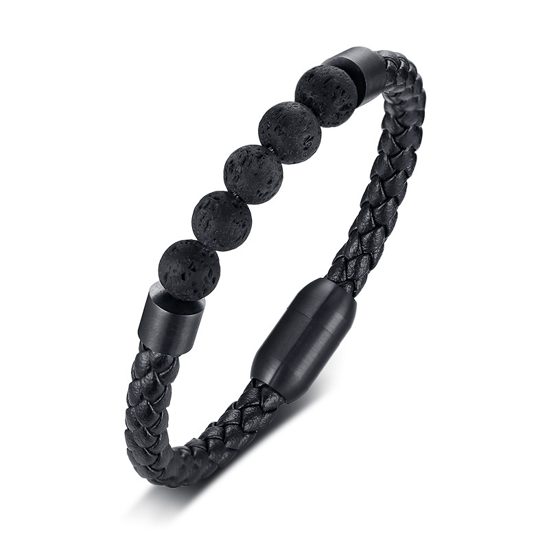 Kožený náramek s černými lávovými kameny