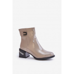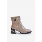 Lakované Kotníkové Boty Na Podpatku Zateplené Šedé Velikost: 39