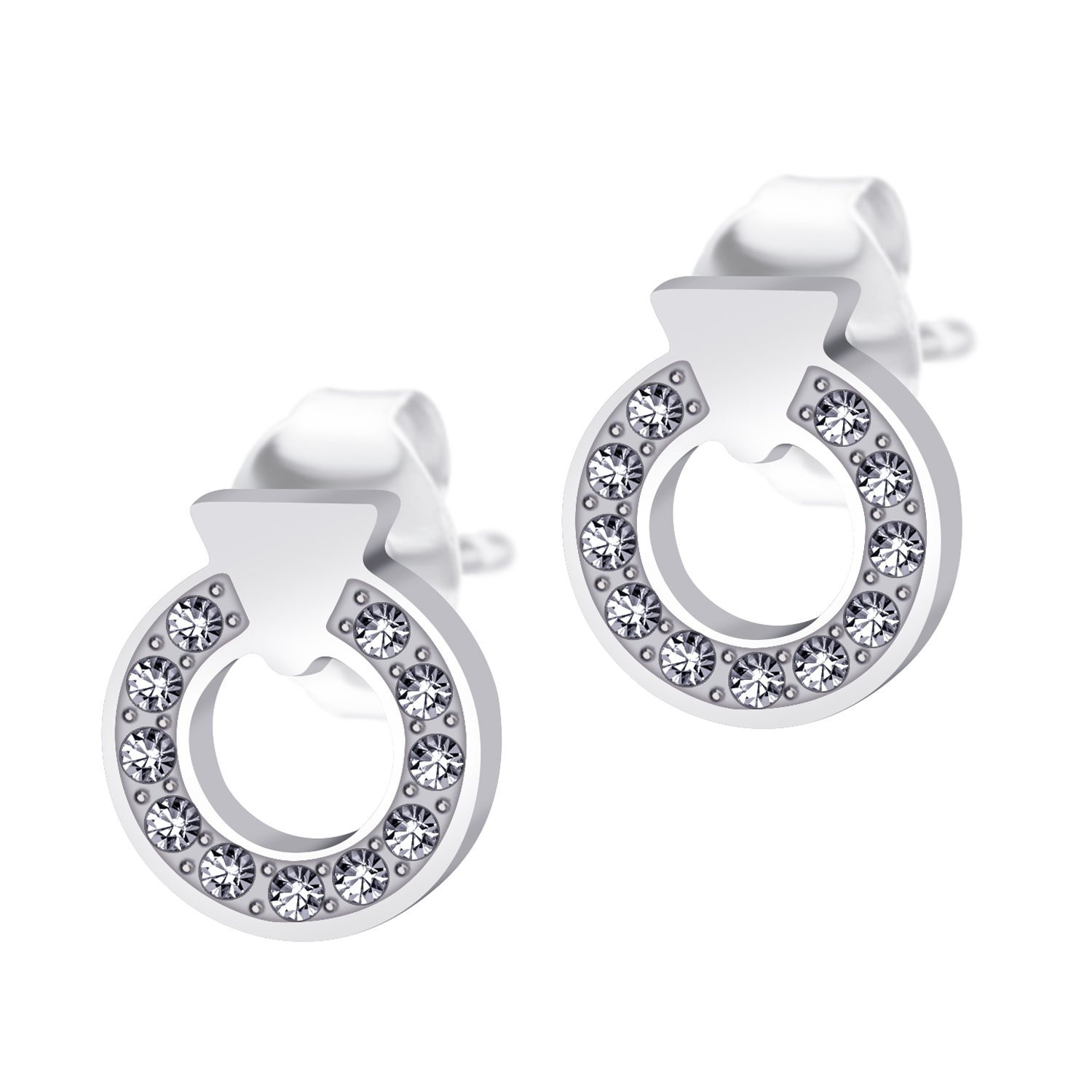 Napichovací náušnice z chirurgické oceli kroužek osázený zirkony - stříbrné