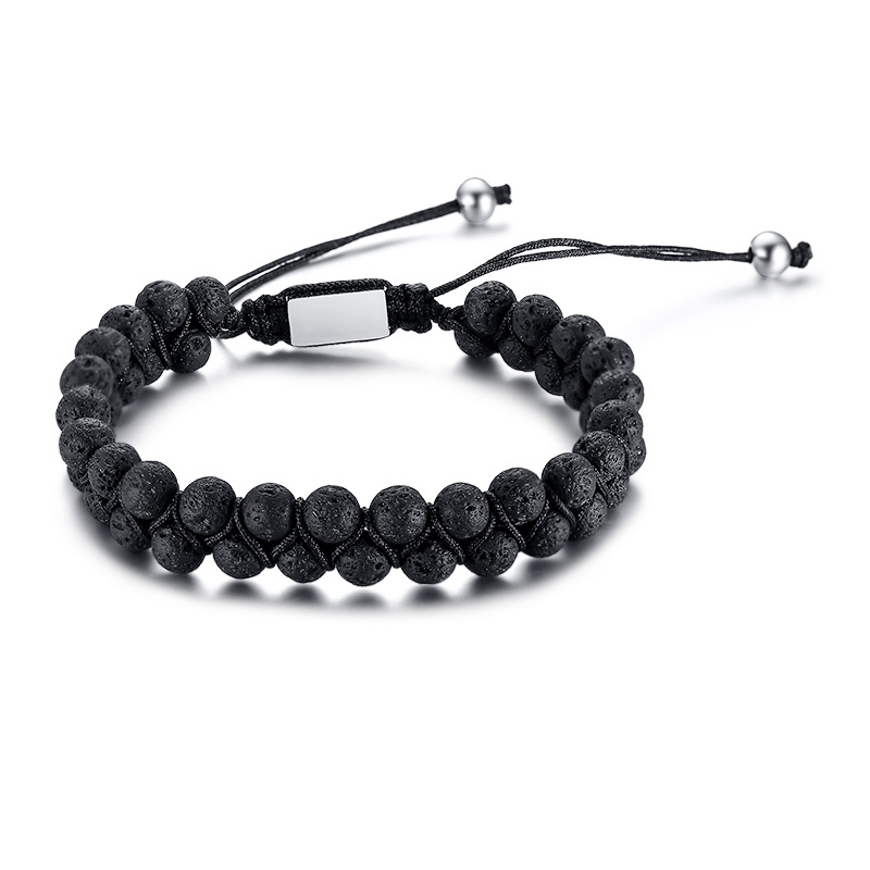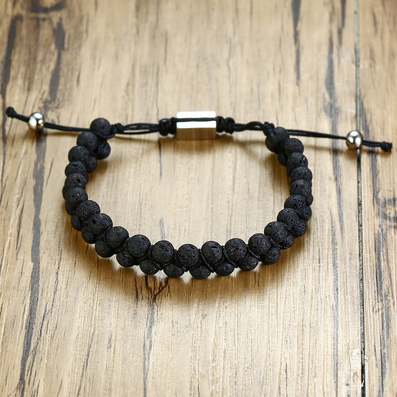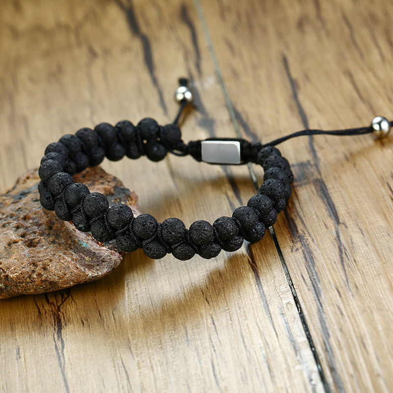 Náramek ze sopečného kamene a chirurgické oceli - černý