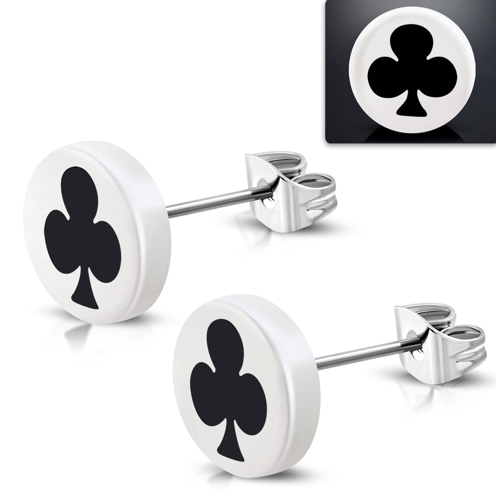Náušnice chirurgická ocel - bílé se symbolem z karet (kříže)