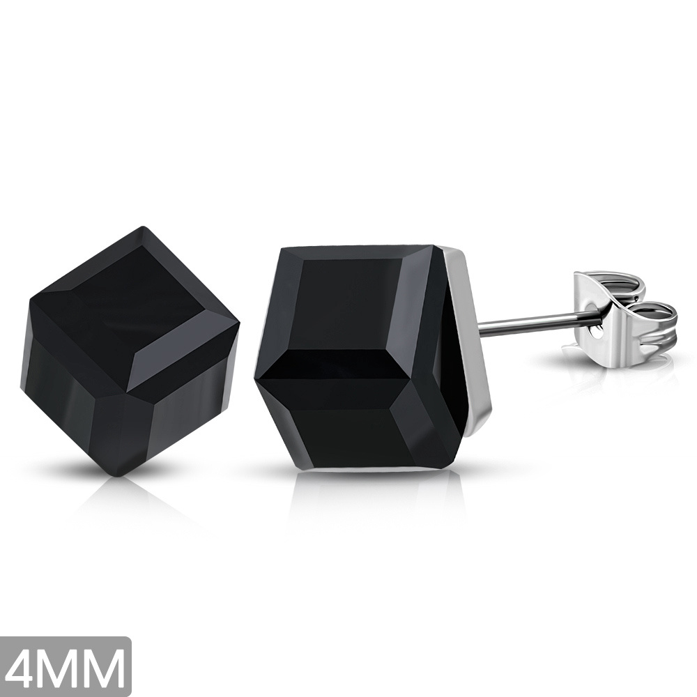 Náušnice chirurgická ocel - černá kostka 4mm