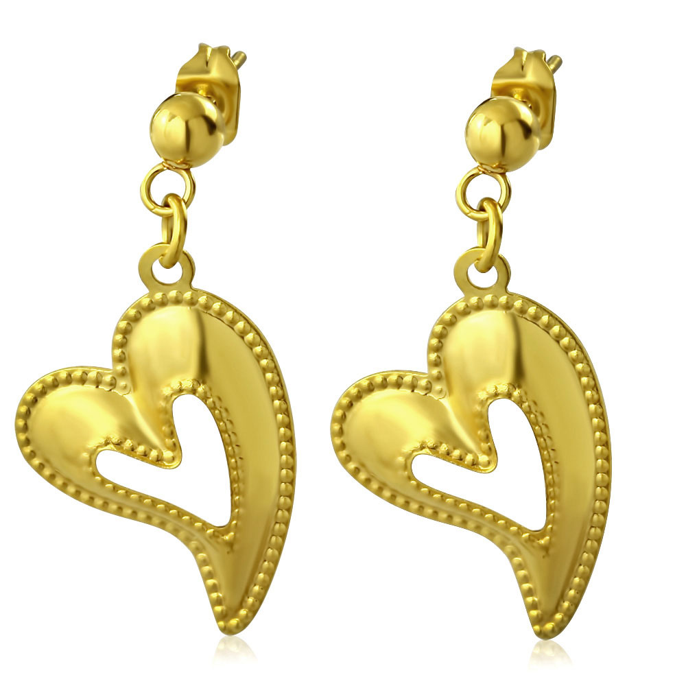 Náušnice chirurgická ocel - srdíčka ve zlaté barvě