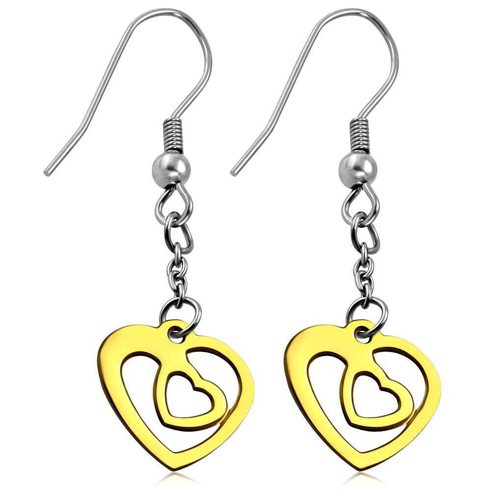 Náušnice chirurgická ocel - zlaté srdce