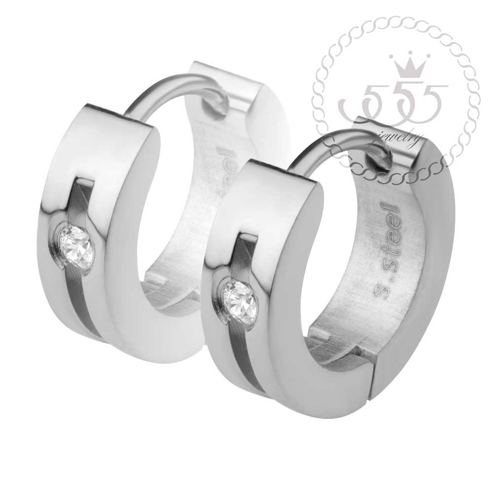 Náušnice kroužky z chirurgické oceli s drážkou a vsazeným zirkonem