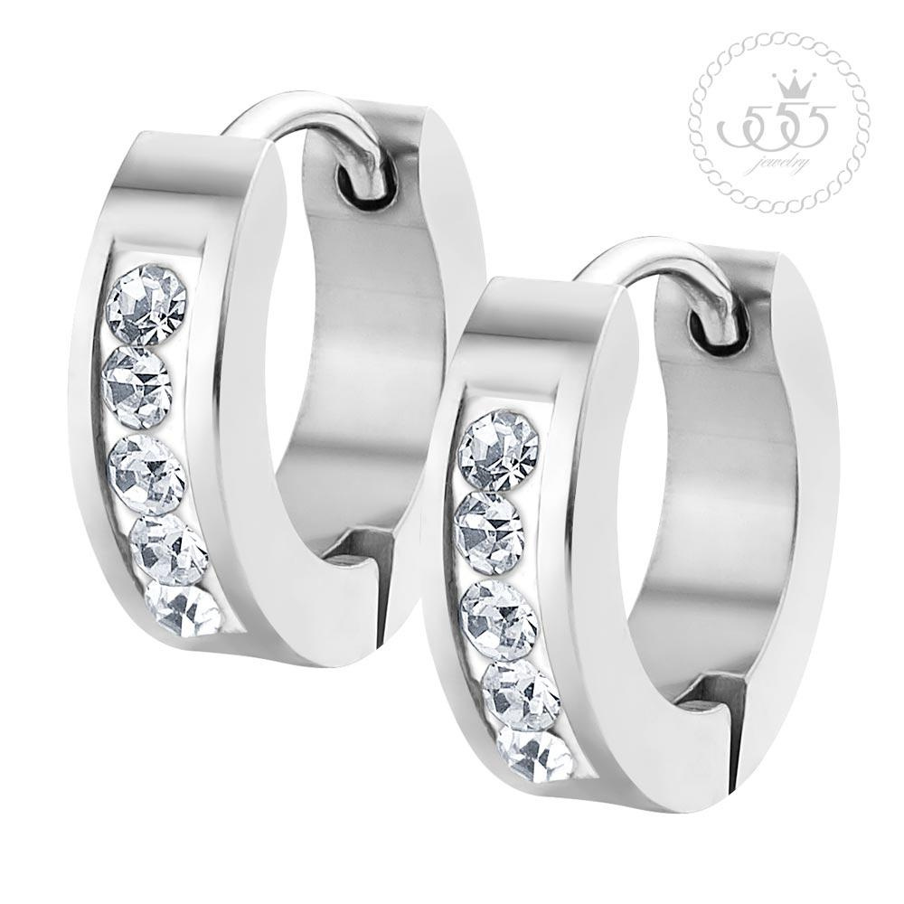 Náušnice kroužky z chirurgické oceli se zirkony po obvodu