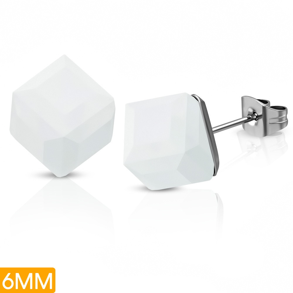Náušnice ocelové - bílá krychle