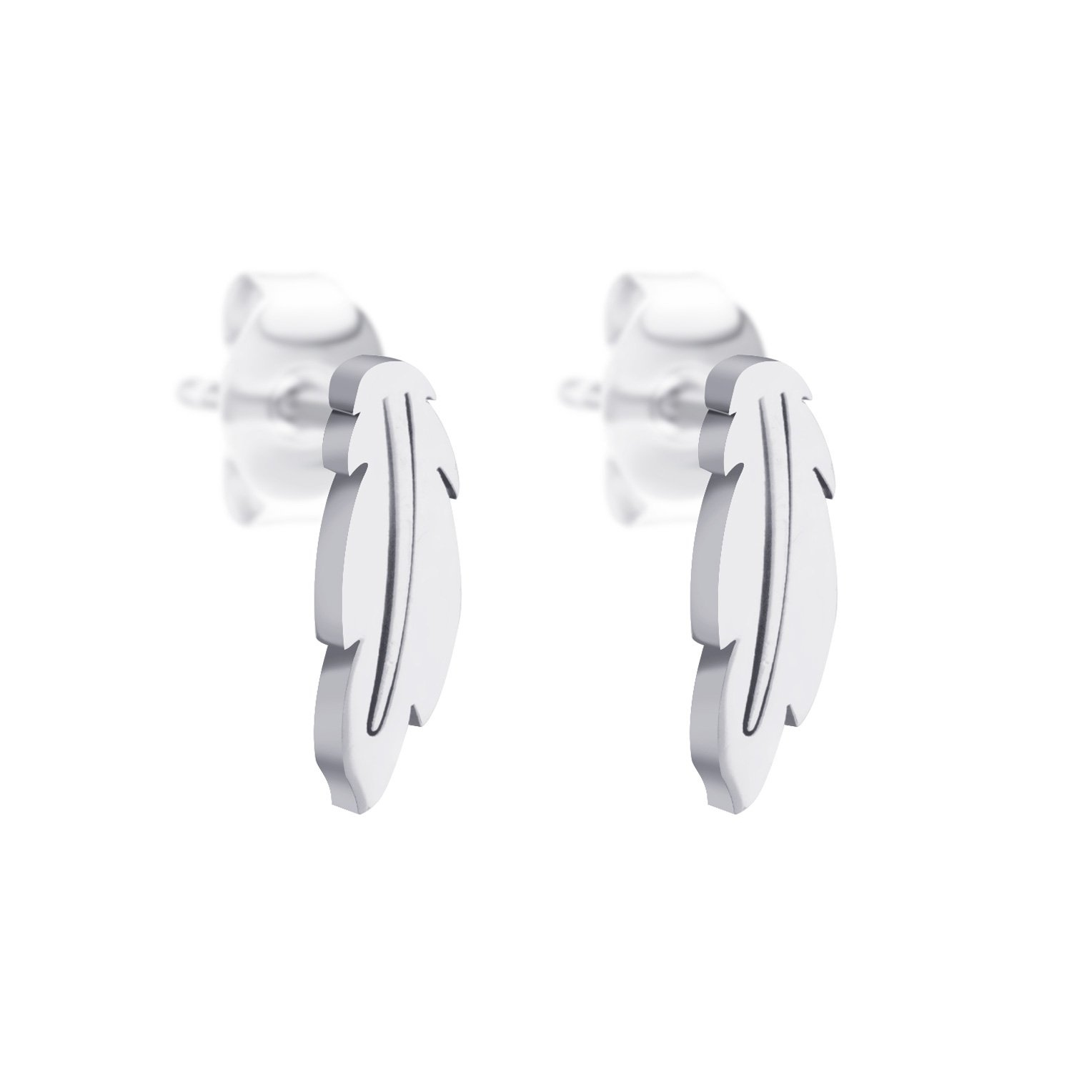 Náušnice pecky z chirurgické oceli pírko - stříbrné